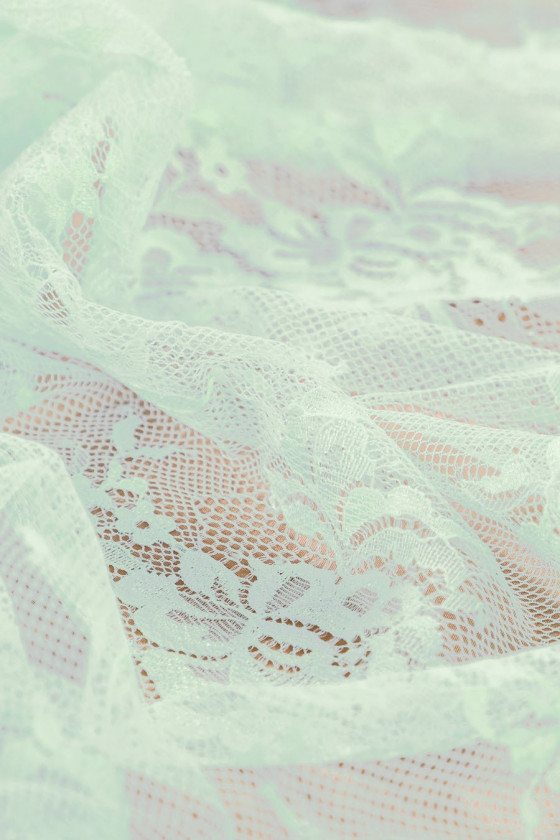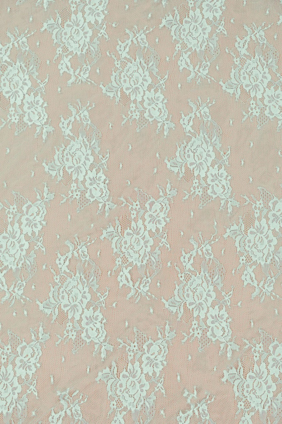 Vacker krona i pastellfärgad mintfärg - färdig på båda sidor med en tand (för självskärning). Ett delikat tyg, perfekt för aftonklänningar eller blusar.