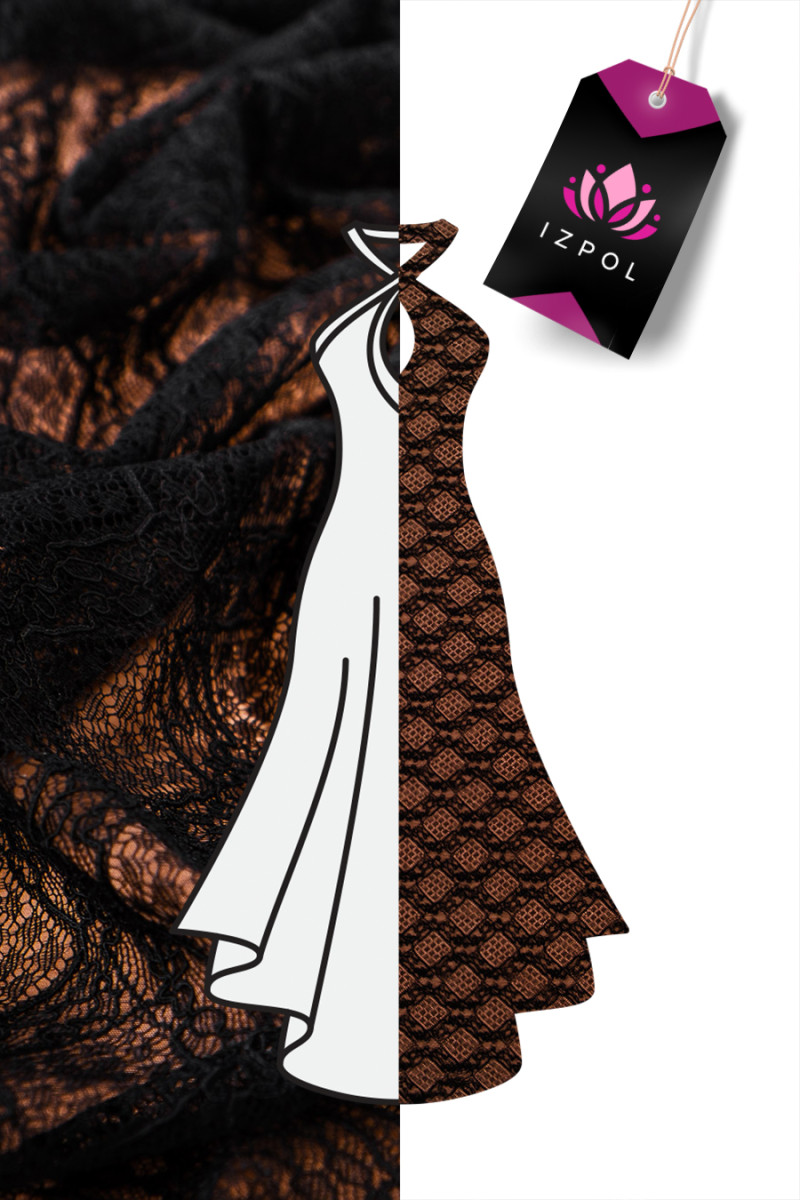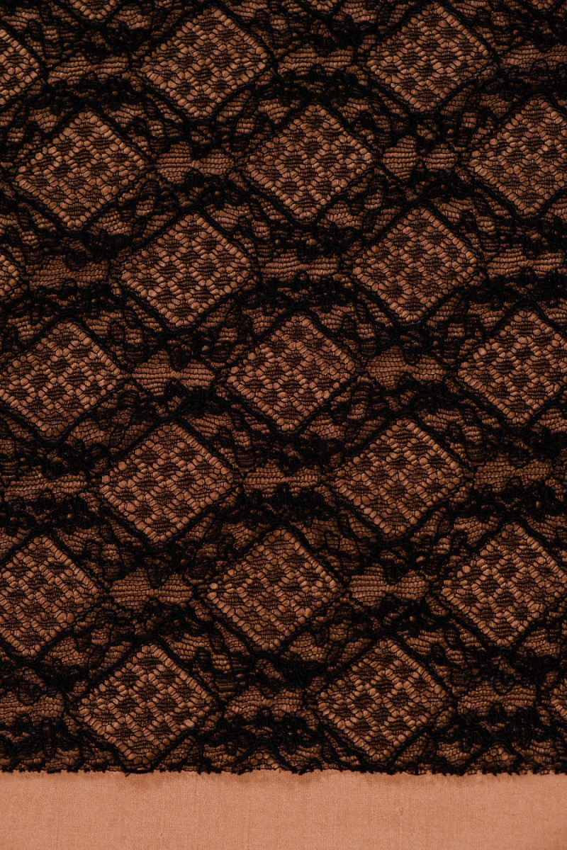 Delikat spets i svart med ett mycket intressant, tätt, geometriskt mönster. Kronan är flexibel - den är inte färdig med en dekorativ tand. Tyget är 90 cm brett.