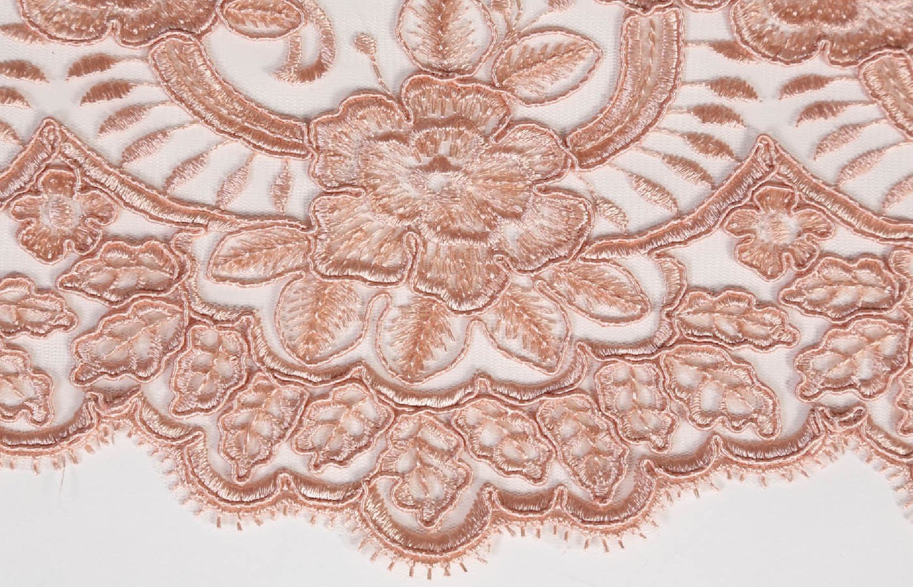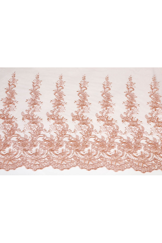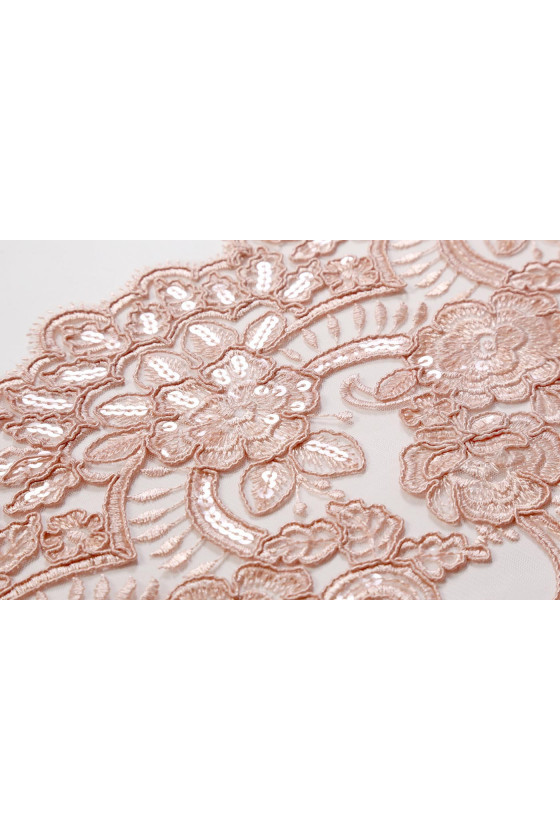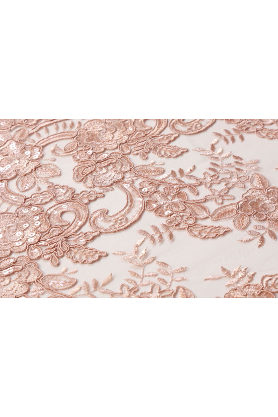 Vackert kvällstyg. Broderade mönster på tyll. Påsydda paljetter. Perfekt för en blus eller klänning - vi syr den omkrets.