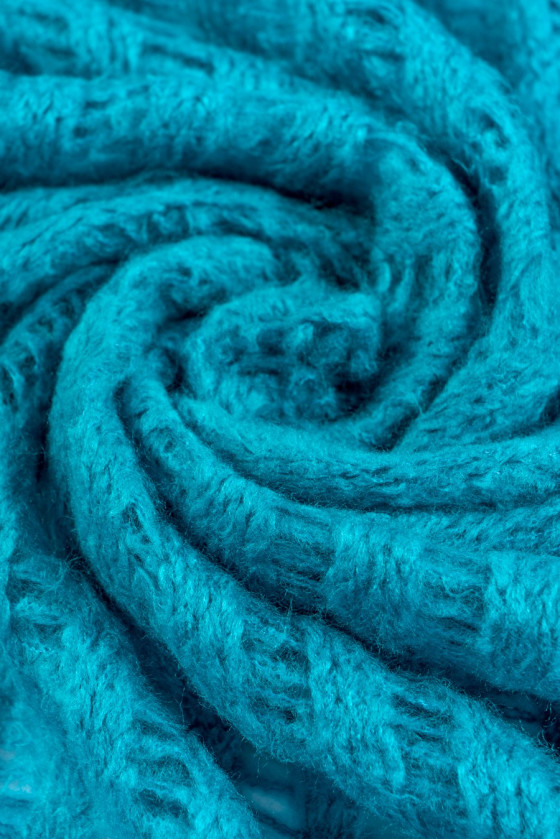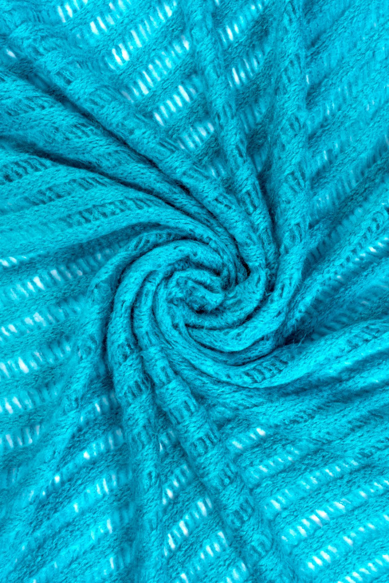 Italiensk tröja stickat tyg av mycket god kvalitet. Mjuk, fluffig med en lös genombruten väv. Perfekt för att sy en tröja eller polotröja. Sammansättning: 75% PC, 25% CA. Färger: turkos.