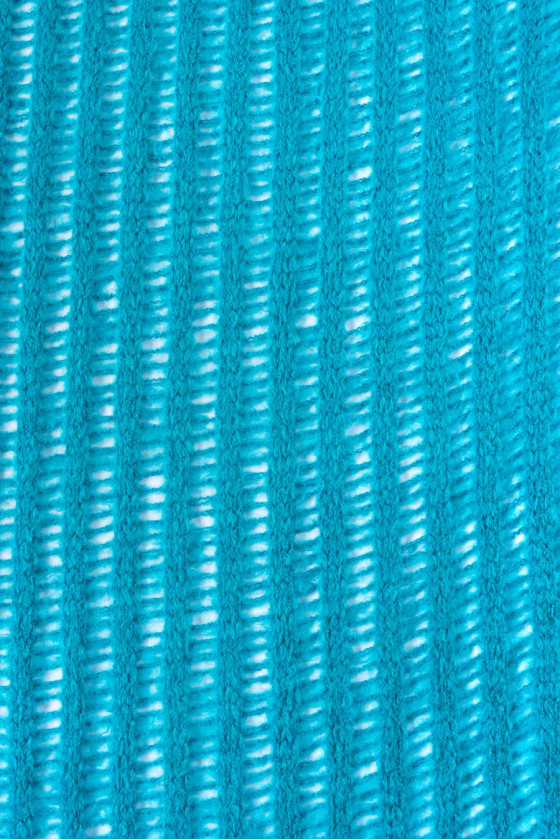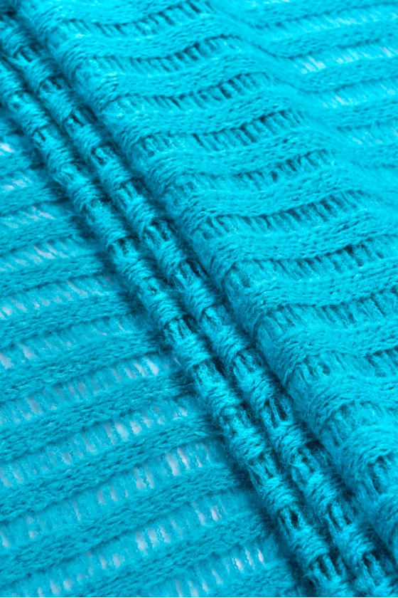 Italiensk, genombruten tröja stickad i turkos.