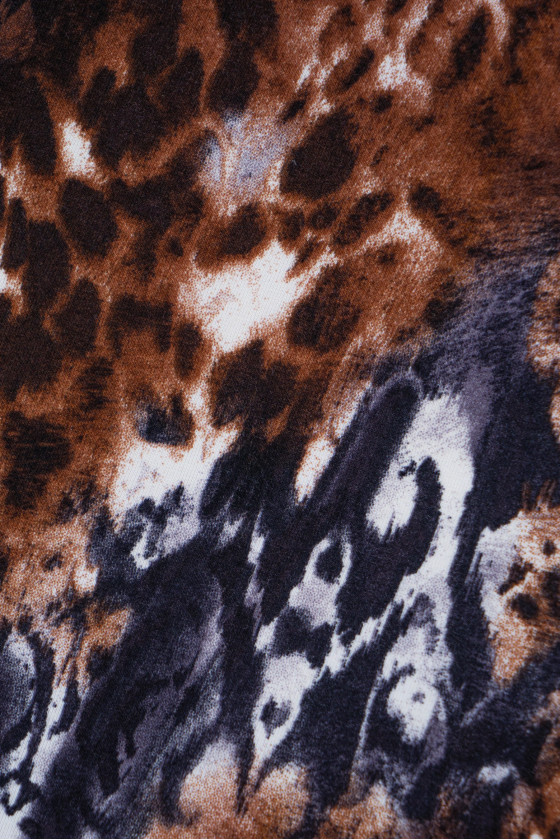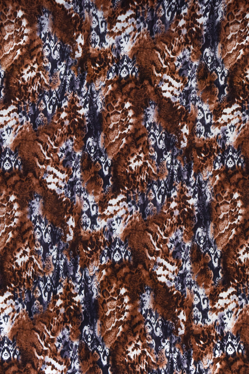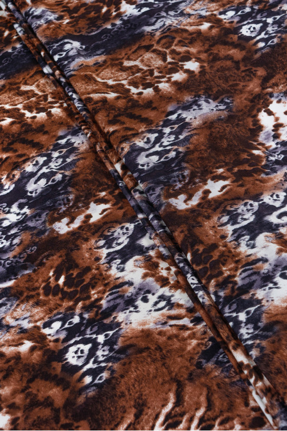Italienskt viskosstickat tyg med ett brungrått ormskinnsmönster. Viskosstickat tyg är ett naturligt tyg (erhållet från cellulosa), mycket mjukt och luftigt.