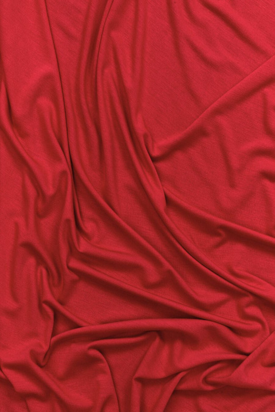 Italienskt viskosstickat tyg med tillsats av elastan i ett brett utbud av färger. Det stickade tyget är tunt, perfekt för blusar, mjukt, matt och elastiskt. Vi rekommenderar den för blusar, toppar, T-shirts och leggings.