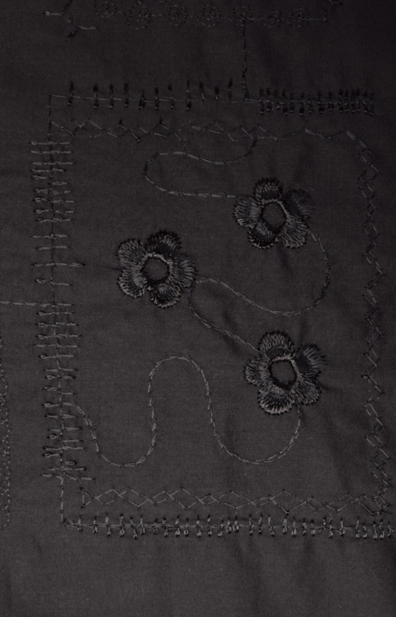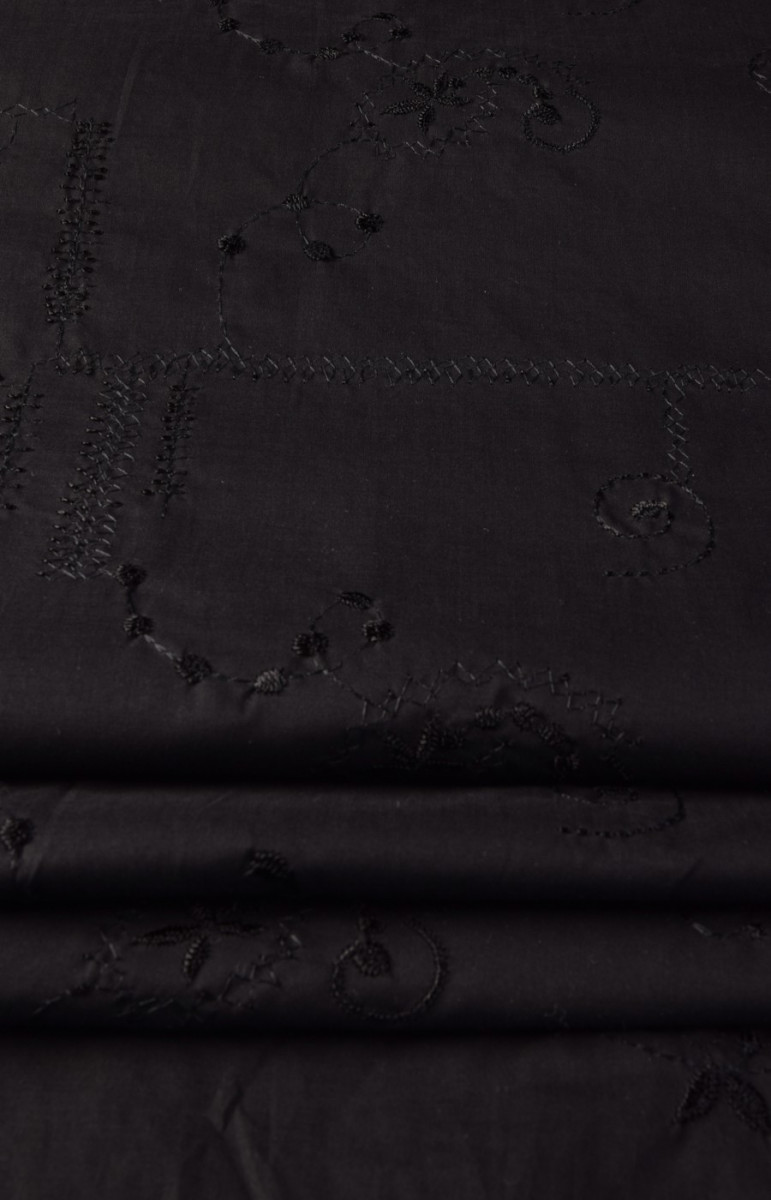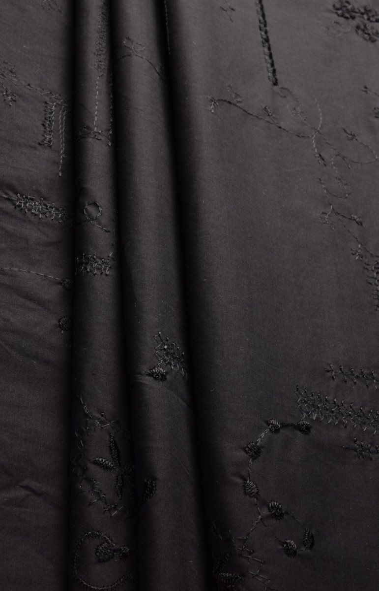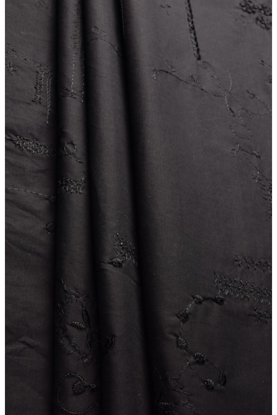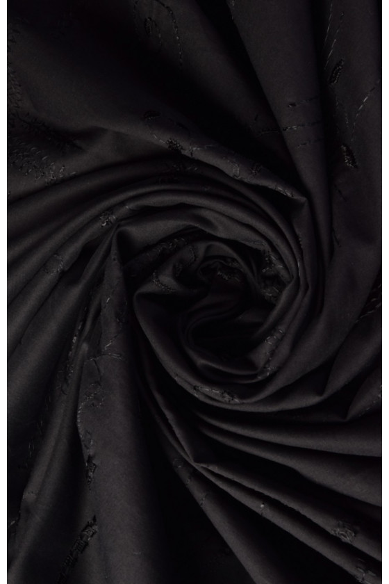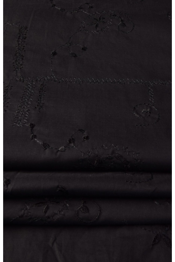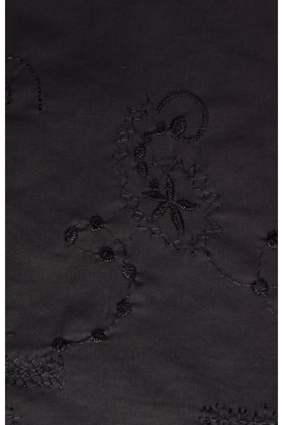 Broderad batistbomull är 100% naturlig och återvinningsbar. Kläder gjorda av det är perfekta för varma dagar. Vi rekommenderar den för att sy skjortor, blusar, klänningar eller kjolar. Färger : Tyg och broderifärg - svart.