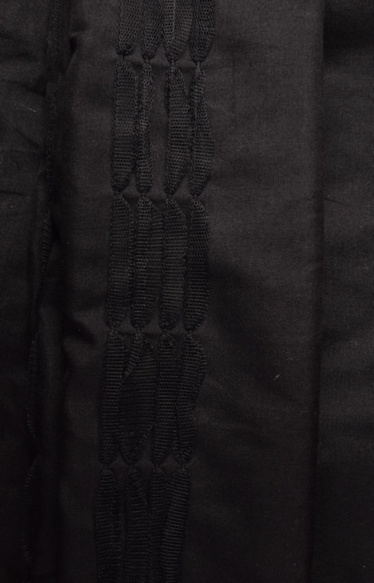 Ett intressant förslag av bomullsbatist sydd med tyllband. Vi rekommenderar att du syr blusar, klänningar eller kjolar. Svart.
