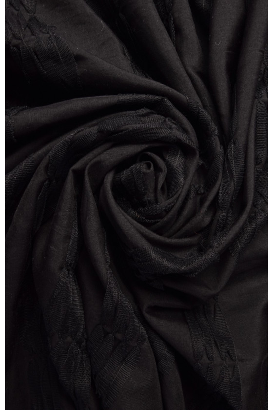 Ett intressant förslag på batist sytt med tyllband. Vi rekommenderar den för att sy blusar, klänningar eller kjolar. Svart.