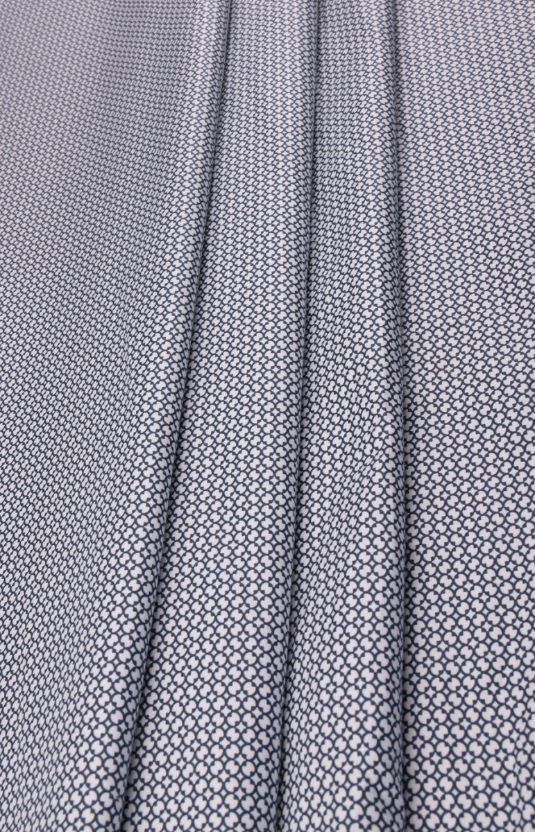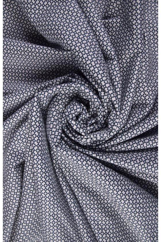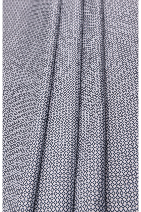 Skjortbomull med ett mycket fint grafitmönster på vit bakgrund, är mjuk och behaglig att ta på och arbetar lätt på fibrerna. Kläder gjorda av det är perfekta för varma dagar. Vi rekommenderar den för att sy skjortor, blusar, tunikor.