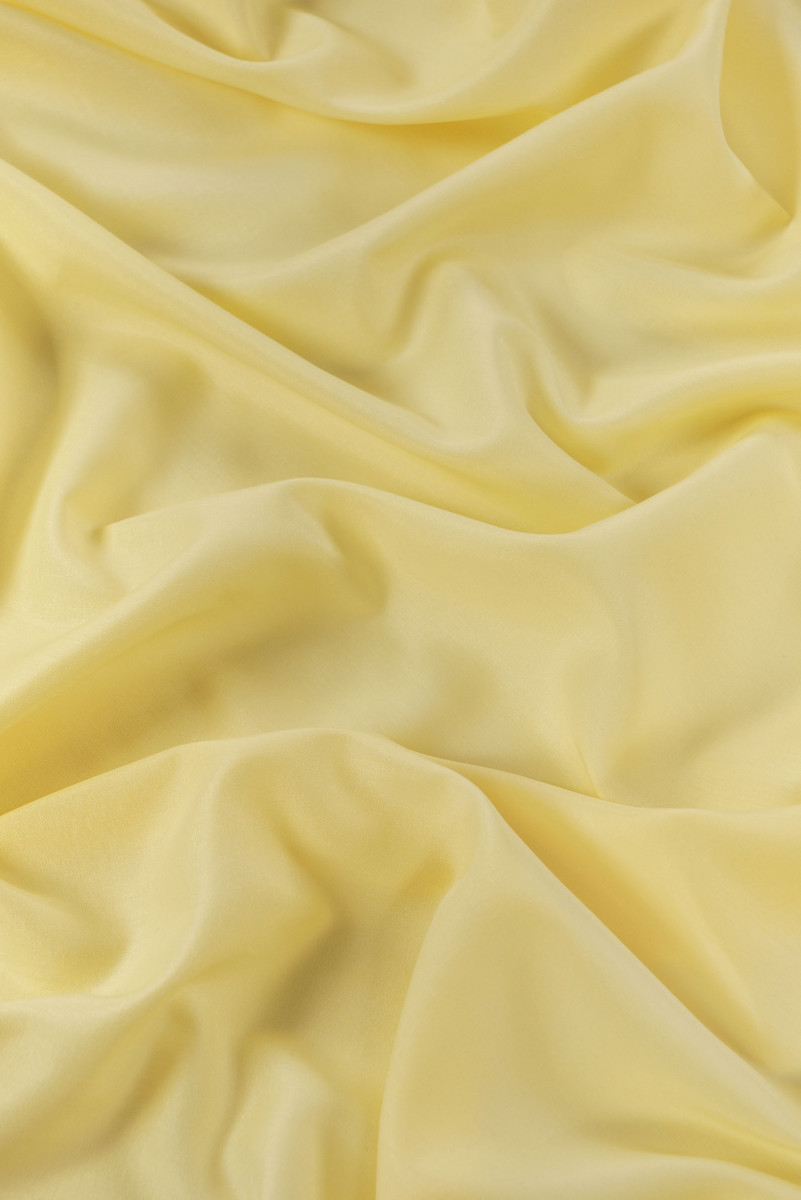 Italienskt bomullsbatisttyg i ljusgult. Tyget är tunt, lätt transparent, elastiskt med en delikat glans.