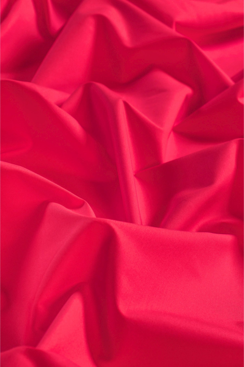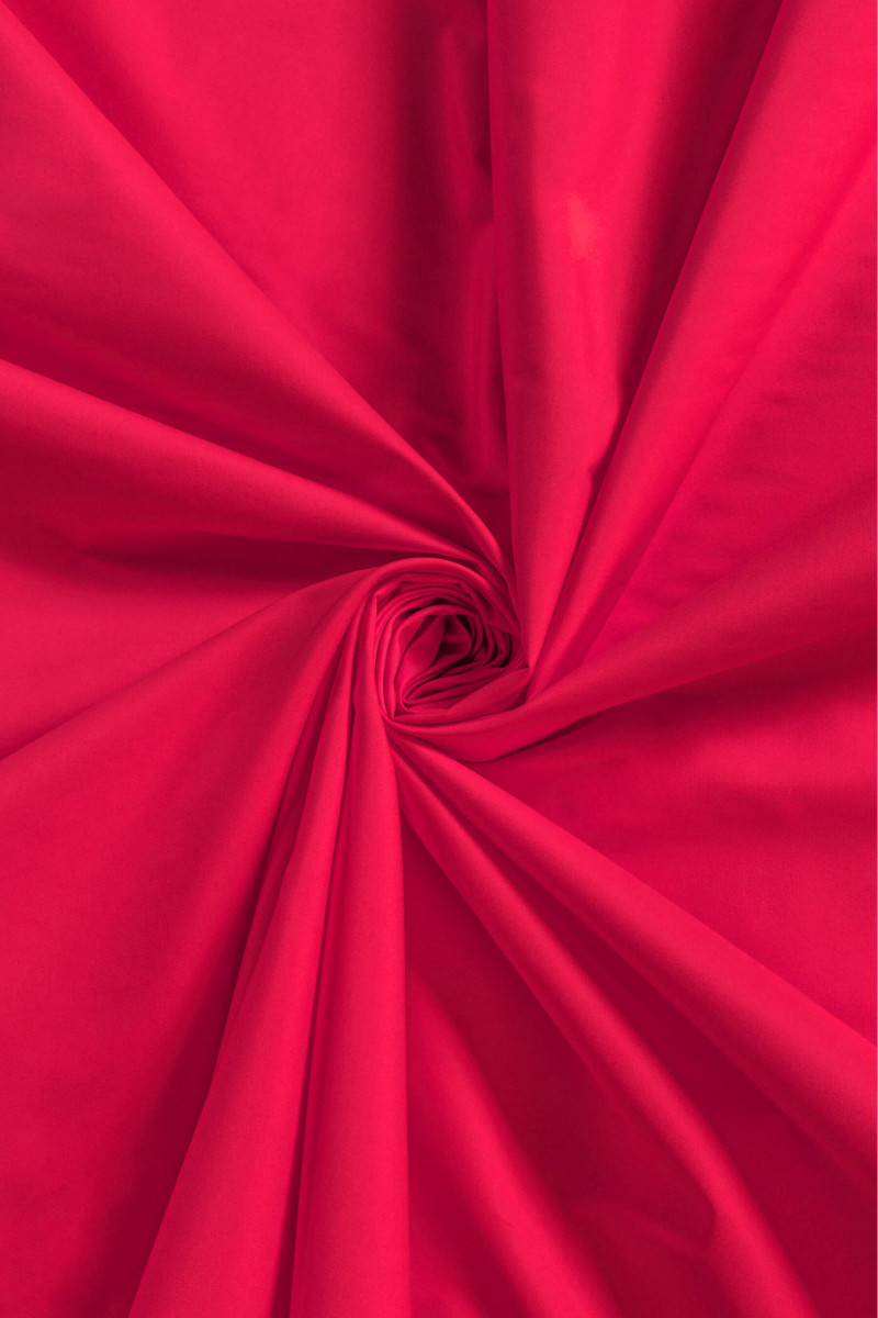 Italiensk skjorta bomull, resår i hallonfärg. Ett tunt men ogenomskinligt tyg med en slät väv avsett för att sy en skjorta, blus eller klänning. Naturligt tyg av mycket god kvalitet, tillsatsen av elastan gör det bekvämare att använda och rynkar mindre. Ett oersättligt tyg på våren och sommaren.