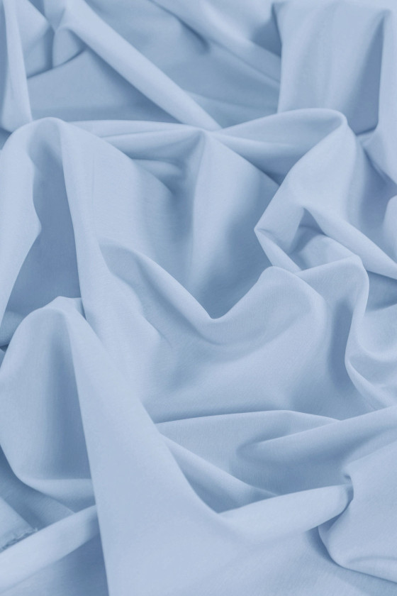 Italiensk skjorta i bomull, resår i gråblått. Ett tunt men ogenomskinligt tyg med en slät väv avsett för att sy en skjorta, blus eller klänning. Naturligt tyg av mycket god kvalitet, tillsatsen av elastan gör det bekvämare att använda och rynkar mindre. Ett oersättligt tyg på våren och sommaren.