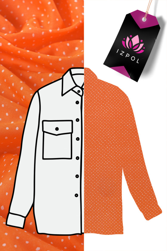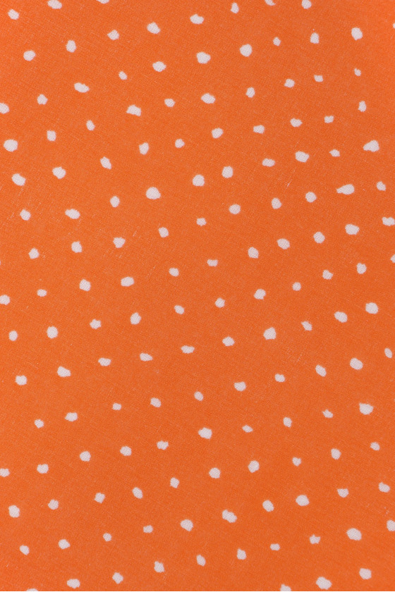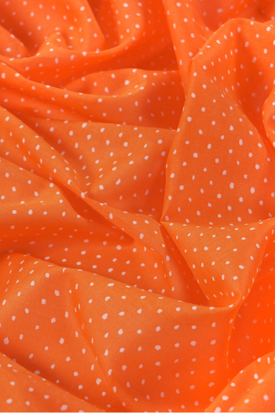 Orange siden- och bomullsbatist med vita prickar är ett skilt, luftigt tyg som passar perfekt i sommarvärmen.