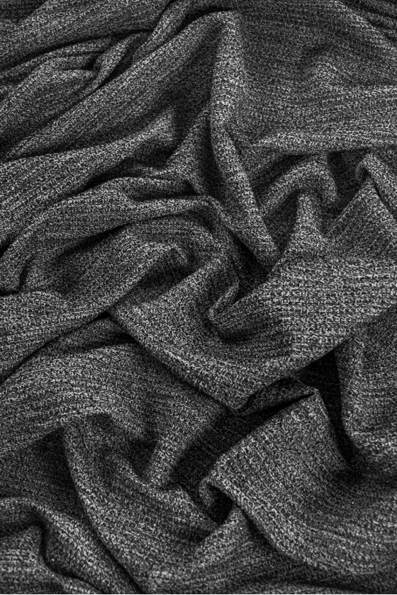 Italiensk chanel kostymtyg i vitt och svart med silver lurextråd. Ett mjukt, köttigt tyg med en kompakt väv - perfekt för att sy en klänning, kjol, kostym eller kappa.