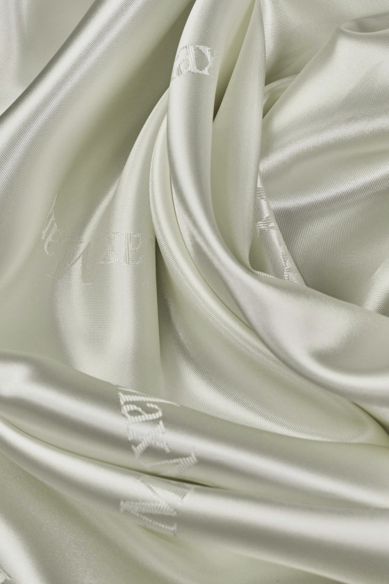 Italienskt jacquardfoder 100% viskos i ecru-färg, signerat med namnet på ett välkänt italienskt modehus. Fodret är icke-elastiskt med en satinväv med en mycket ädel glans. Dess naturliga sammansättning gör den perfekt som foder för en jacka eller kappa. Ett fantastiskt förslag för människor som gillar märkestyger.