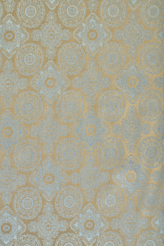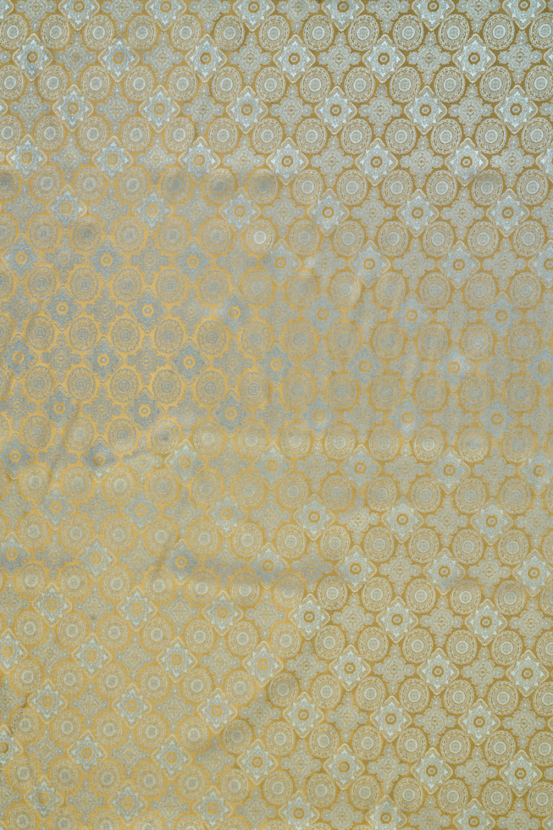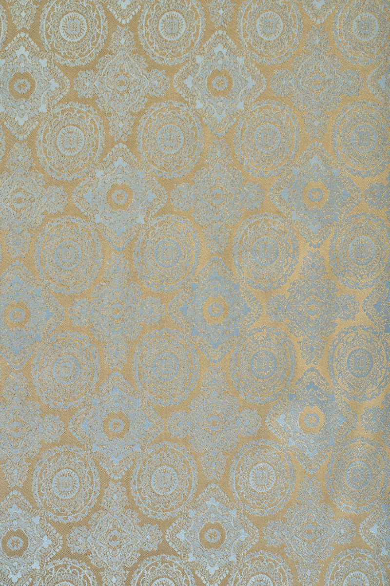 Italienskt jacquardfoder i blått och guld - tvåfärgat med orientaliskt motiv.