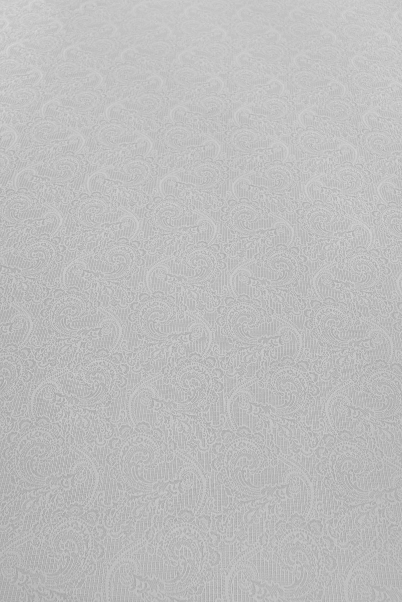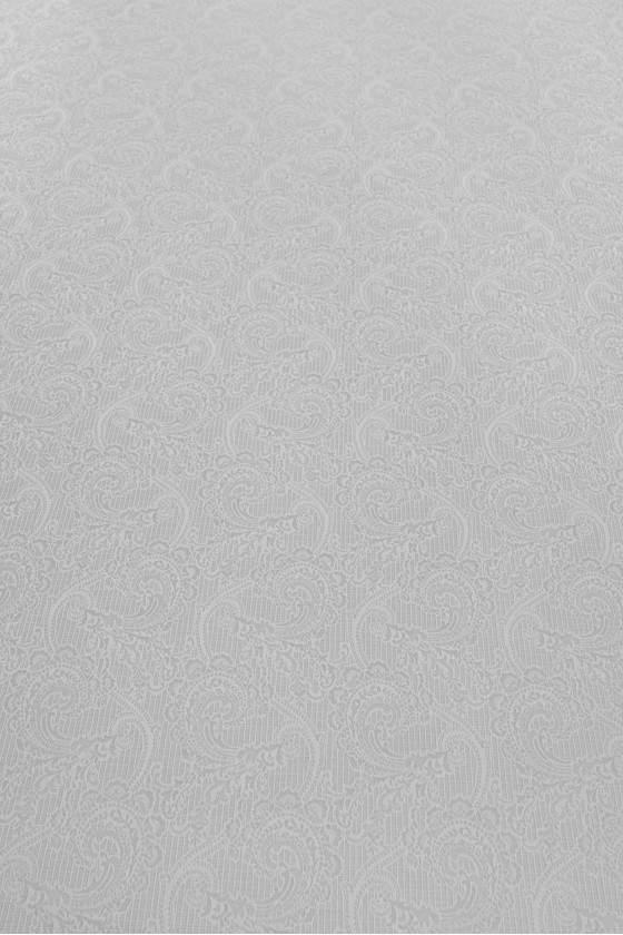 Italienskt jacquardkostymtyg med Paisleymotiv i ljusgrått. Tyget är tunt, något styvt, mycket elastiskt.