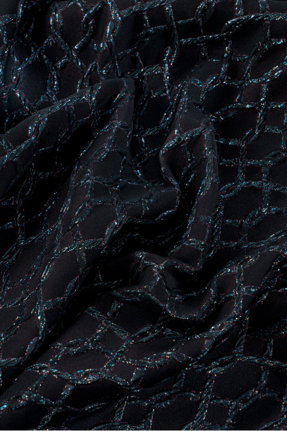 Jacquard är ett dubbelsidigt material, oftast med något blanka, stora och imponerande mönster. Färgen på temat ändras beroende på vilken sida ljuset kommer ifrån. De kännetecknas inte bara av unika mönster och struktur, utan också av hög hållbarhet och motståndskraft mot skador. Jacquard är perfekt för klänningar, jackor, kappor eller kostymer. Varje outfit som sys av den kommer att vara mycket elegant och unik. Beroende på vilken typ av tyg du väljer kommer det att fungera bra för aftonkläder, men också för vardagsbruk.