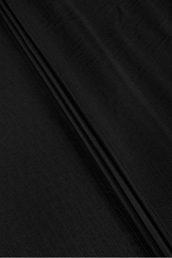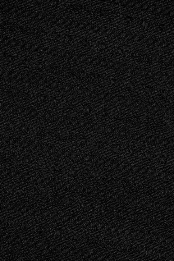Italienskt jacquarddräkttyg i svart med små mönster. Tyget är signerat med namnet på ett välkänt modehus. Tyget är tjockare, styvt, icke-elastiskt. Perfekt för att sy en klänning, kostym, kjol eller för dekorativa ändamål.