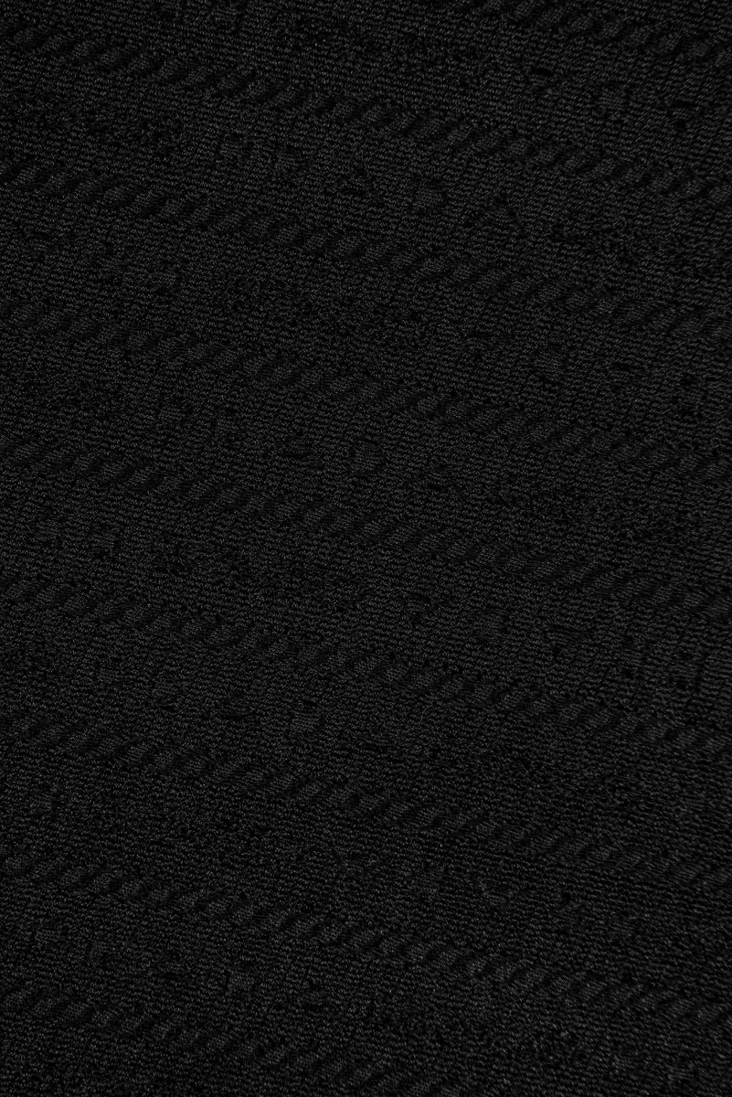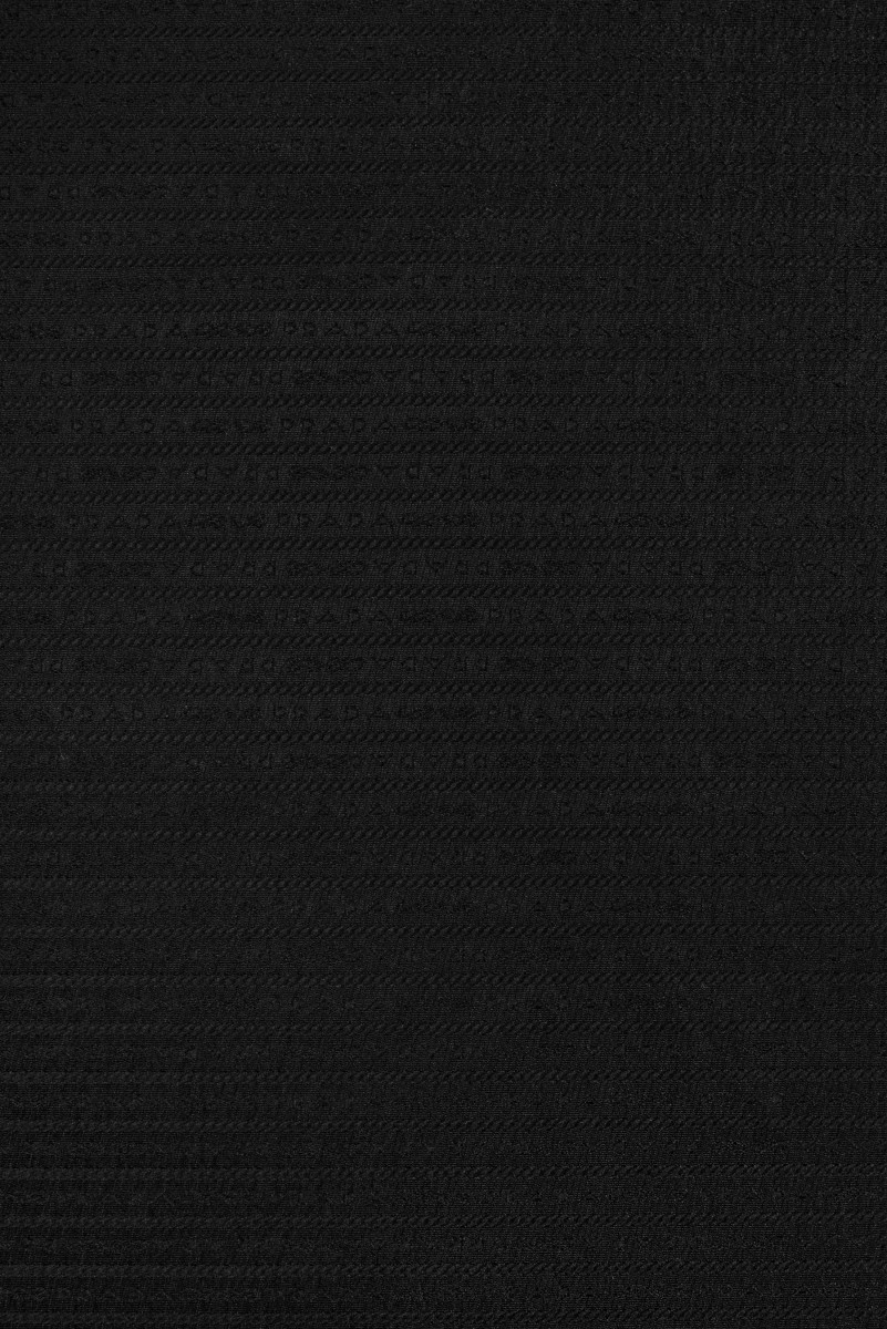 Italienskt jacquarddräkttyg i svart med små mönster. Tyget är signerat med namnet på ett välkänt modehus.