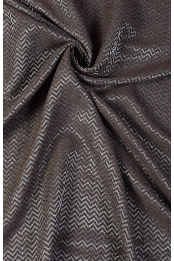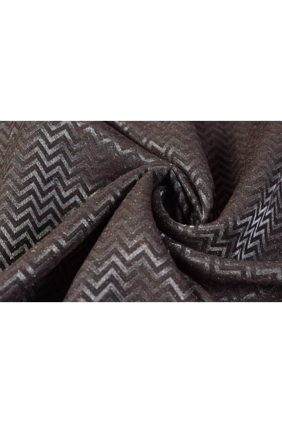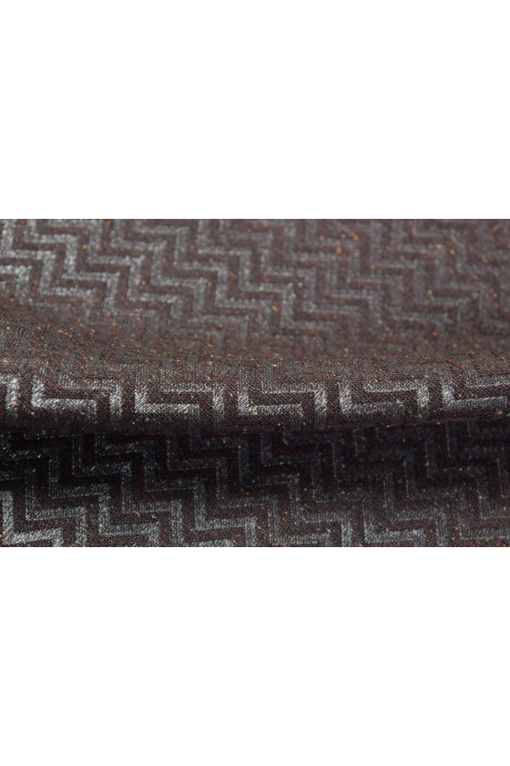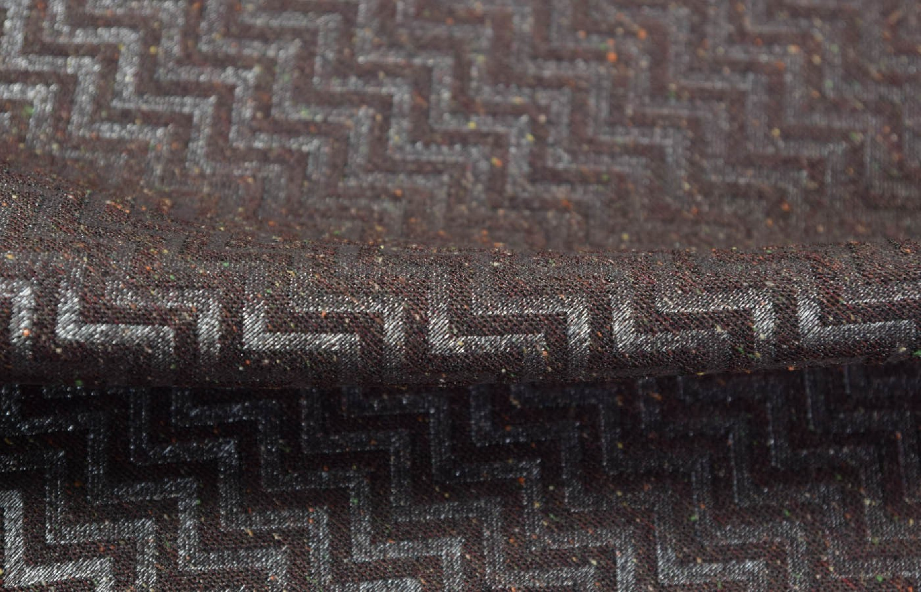 Mjukt vinrött jacquardtyg, silvrigt sicksack. Tyget är perfekt för kjolar eller klänningar.