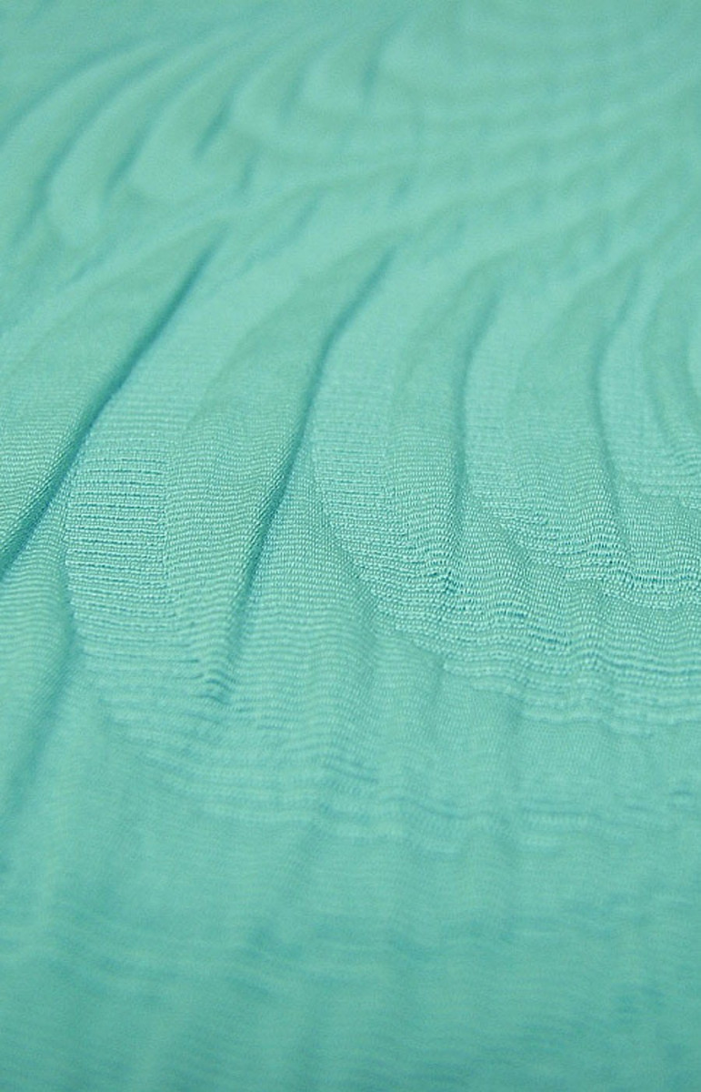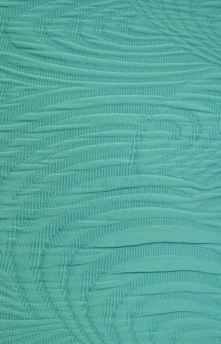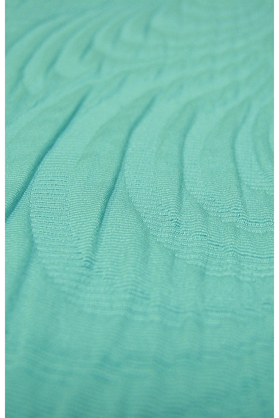 Italienskt jacquardtyg i ljusturkos med ett präglat oregelbundet vågmönster. Tyget är icke-elastiskt, medeltjockt, mjukt. Den är perfekt för att sy en jacka, klänning eller till och med en tunn kappa.