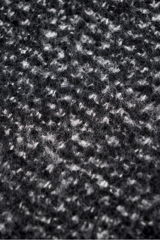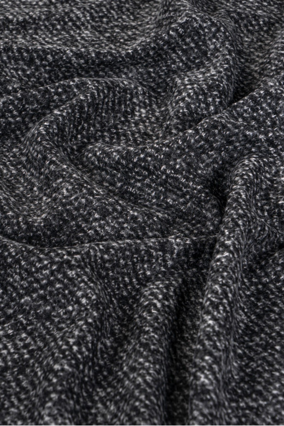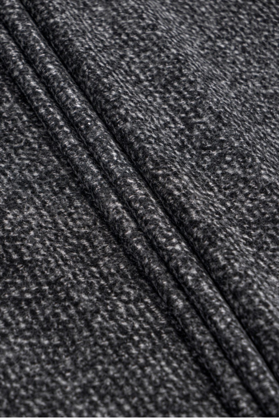 Italienskt kostymtyg vävt av naturlig ull med en inblandning av polyester. Färger: melange - grå, svart, ecru. Lite styvt, köttigt tyg - perfekt för att sy en tunn kappa, jacka eller kjol. Vi rekommenderar kemtvätt.