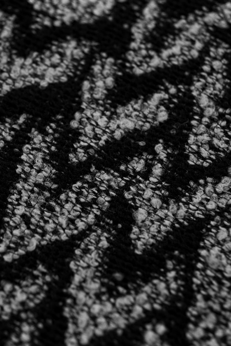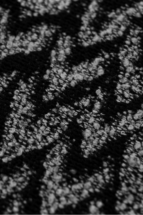 Italienskt kostymtyg i svart och grått oregelbundna sicksackmönster, vävt av naturlig ull med en inblandning av polyester. Tyget är perfekt för att sy en kostym, tunn kappa, jacka. Vi rekommenderar kemtvätt.