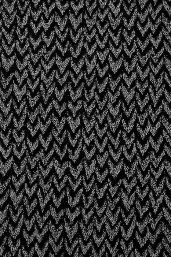 Italienskt kostymtyg i svart och grått oregelbundna sicksackmönster, vävt av naturlig ull med en inblandning av polyester.