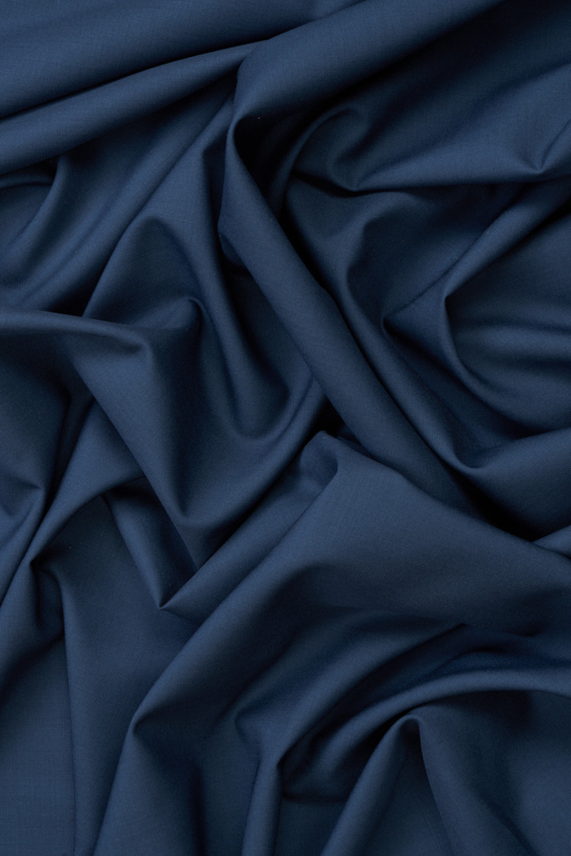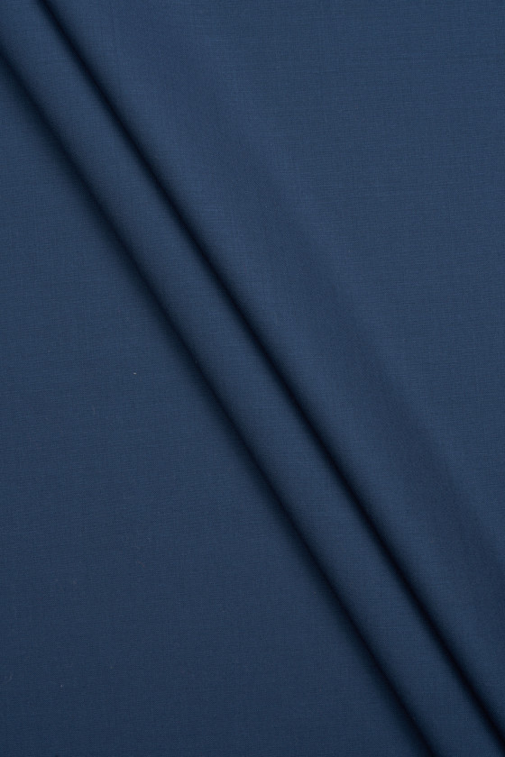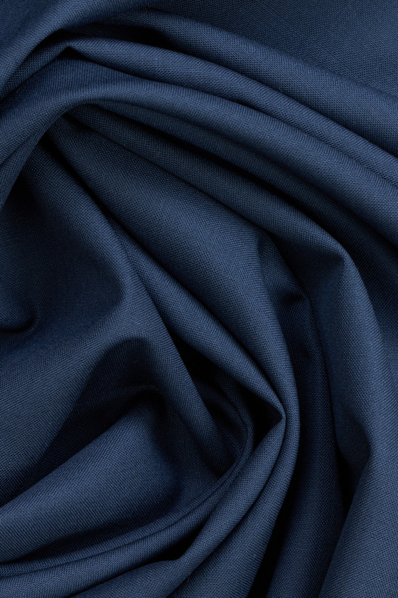 Italiensk kostym ull i ljust marinblått. Mjukt, icke-elastiskt, lätt och tunt tyg. Den är perfekt för att sy en klänning eller kjol.