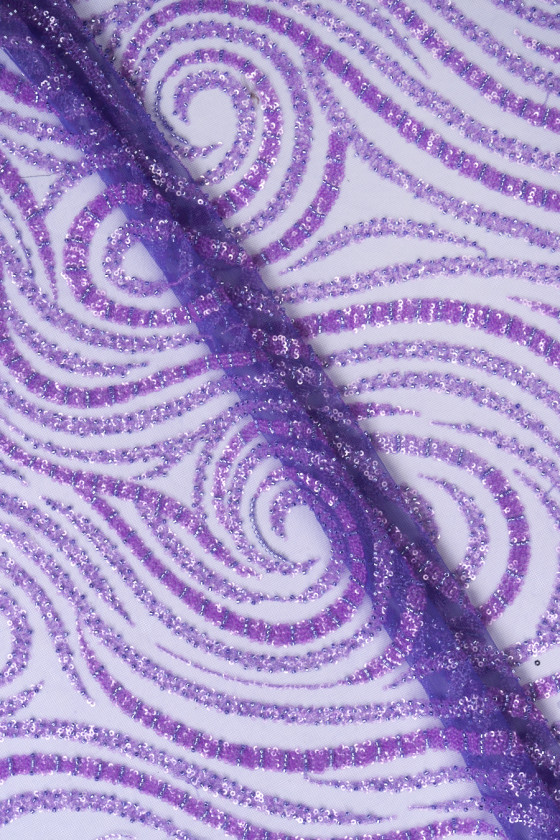 Tyll med pärlor och paljetter - lila vågor