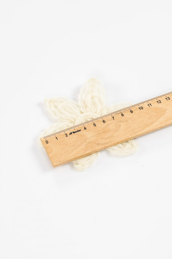 Vacker applikation i form av en blomma med en storlek på 10 cm - gjord av naturlig ull i färgen ecru. Perfekt för att dekorera en tröja, klänning, kappa.