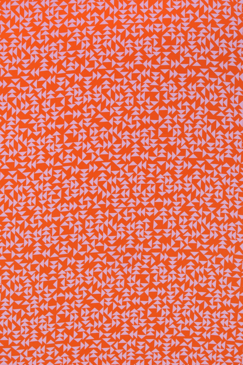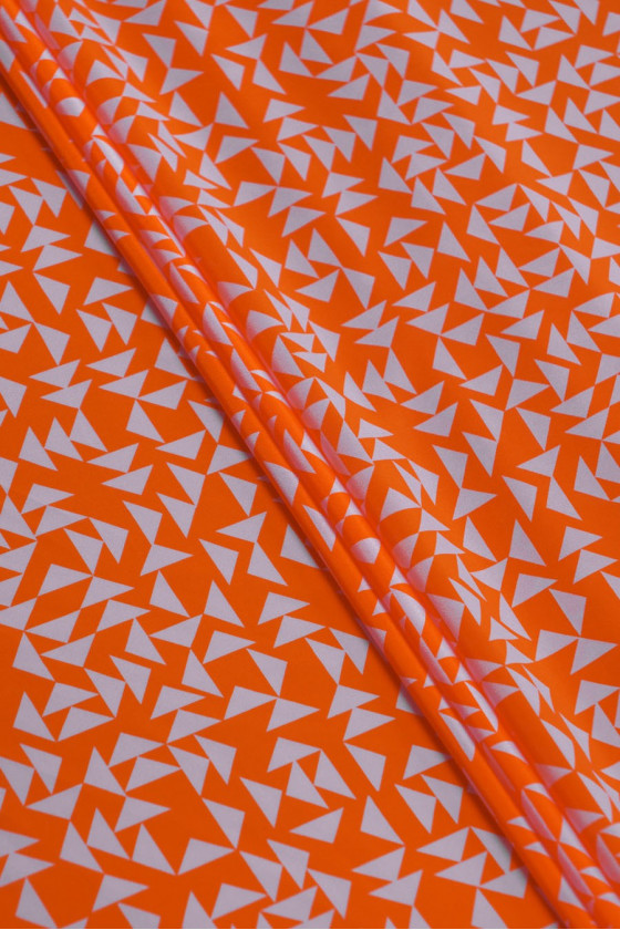 Italiensk crepe 100% siden - orange med små trianglar i smutsrosa.