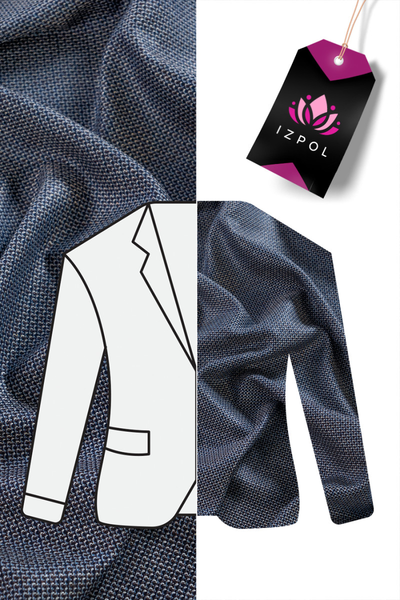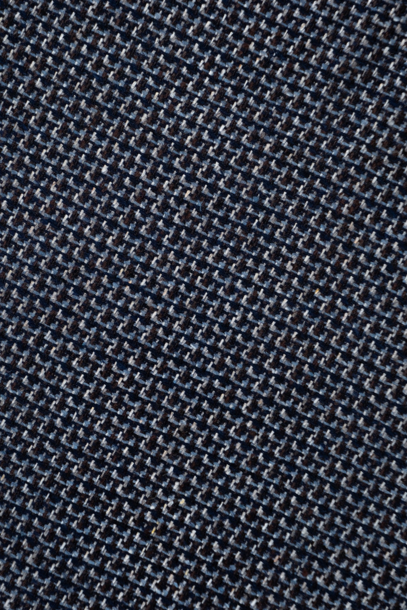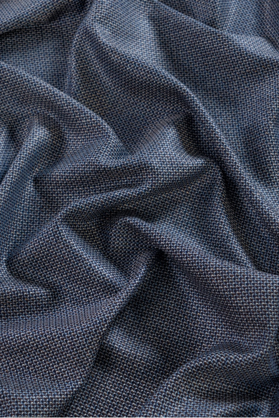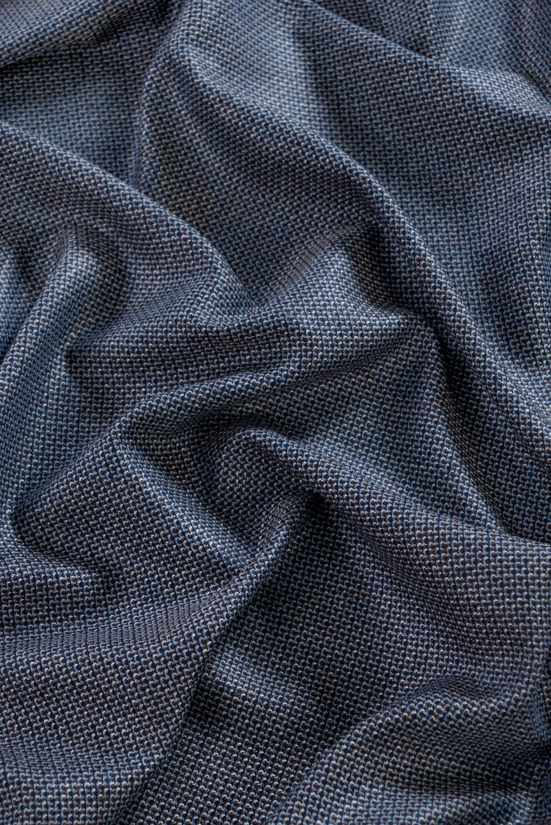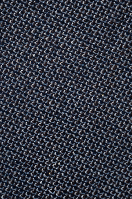 Italienskt kostymtyg, 100% siden med ullliknande väv, kvalitet i världsklass. Tyget är grått och marinblått, med en fin ruta. En mycket originell produkt, mjuk, oelastisk med en ädel glans som är karakteristisk för sidentyger.