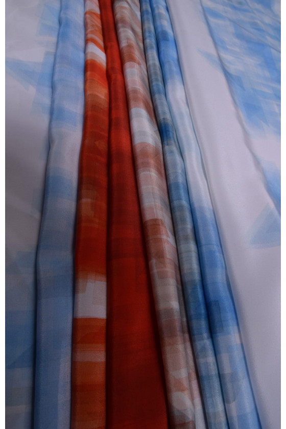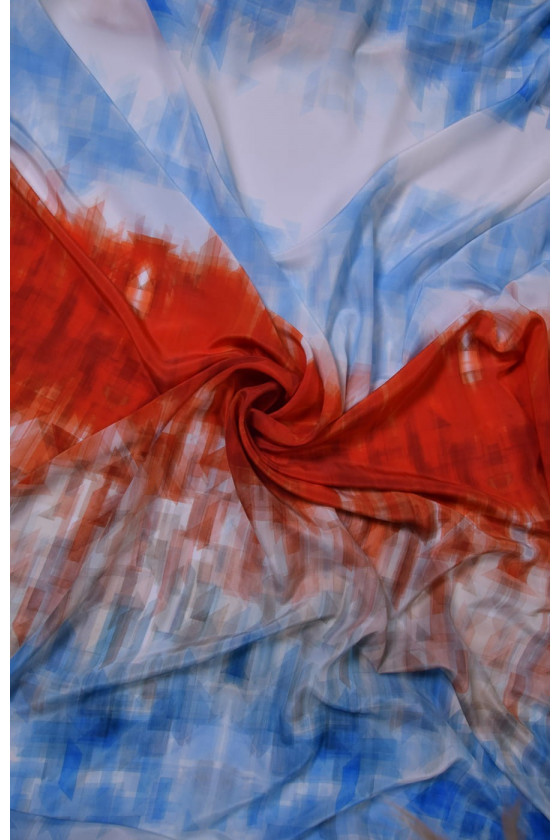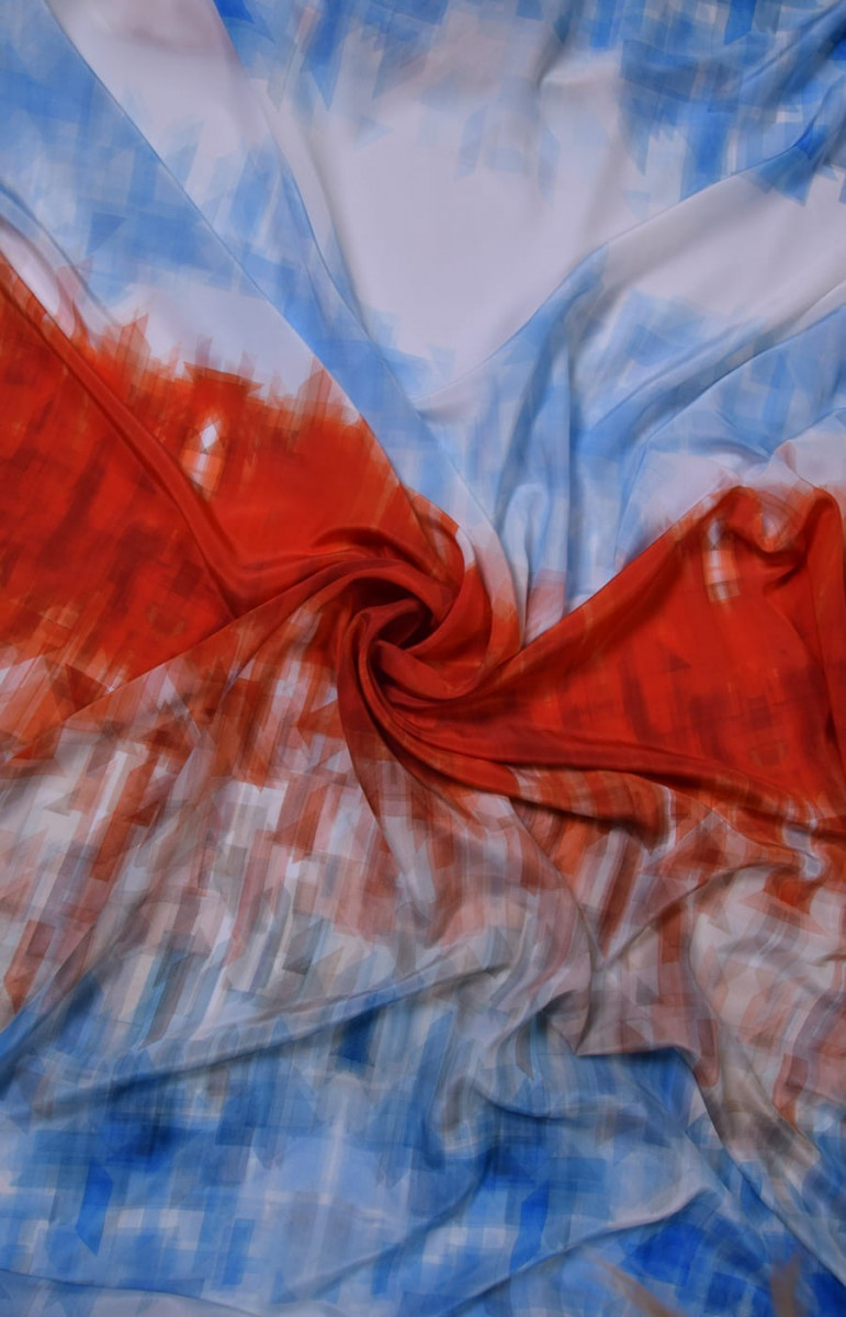Vacker signerad sidencrepe är ett naturligt, delikat, tunt men ogenomskinligt, halvmatt tyg. Den kan användas för att trolla fram luftiga klänningar, delikata blusar, halsdukar, halsdukar. Färger: ecru, blå, röd orange. Halvtransparent tyg, så vi rekommenderar att du väljer ett foder. Mät mängden per omkrets.
