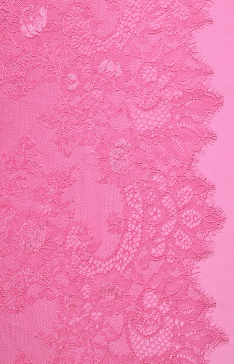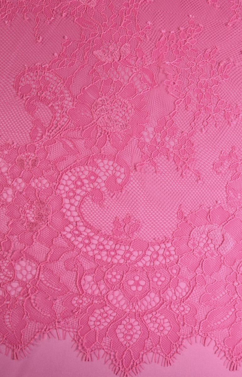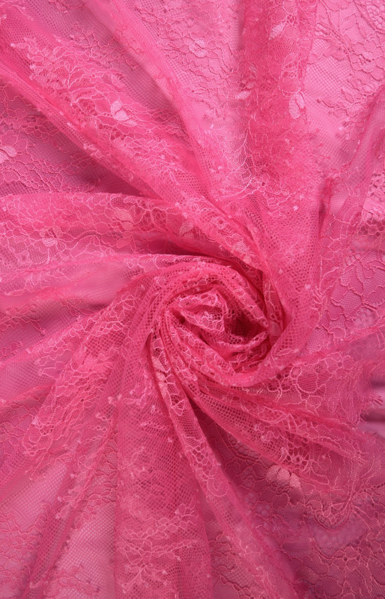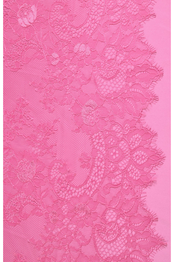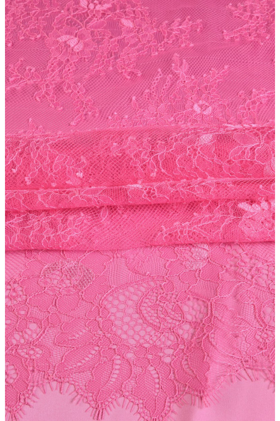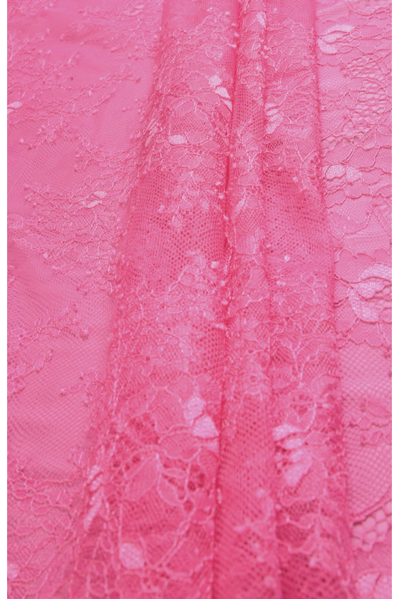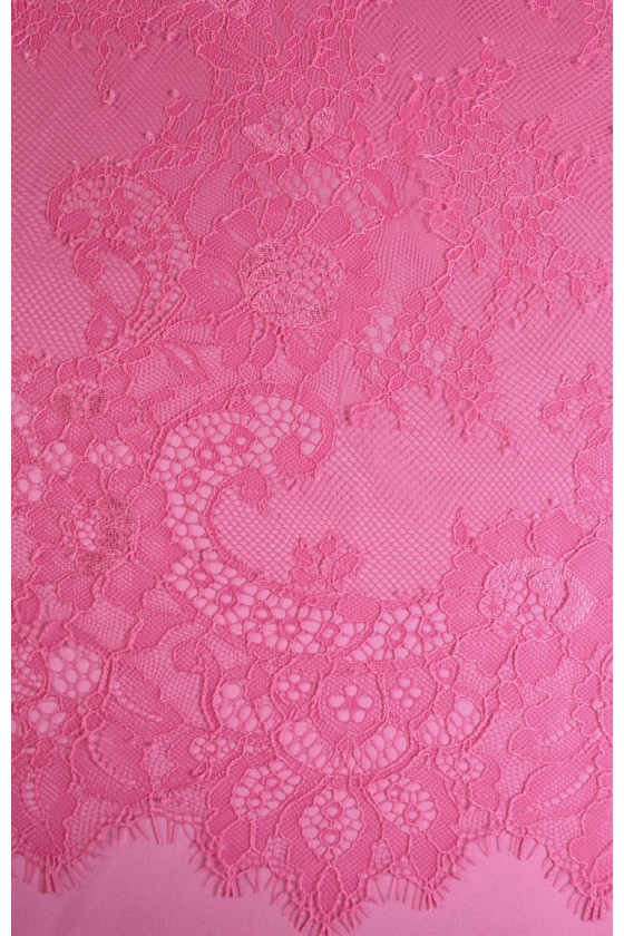 Delikat fransk spets i rosa, 70 cm bred. Spetsen är mjuk, behaglig att ta på, sitter fint. Vi rekommenderar den för blusar, inlägg, eleganta underkläder.