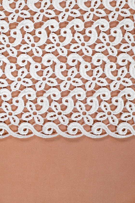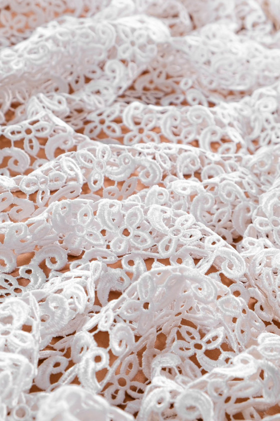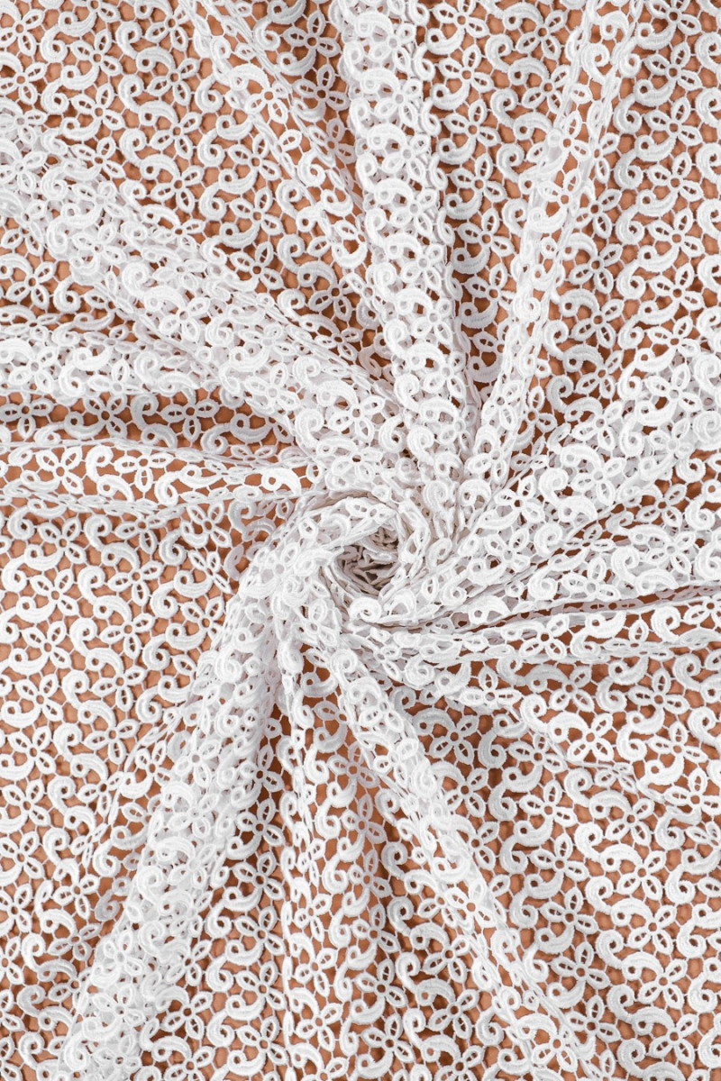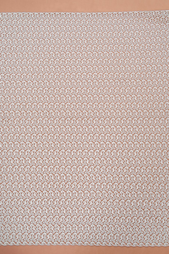 Italiensk guipurespets i cremefärg med motiv av små, täta blommor. Perfekt för att sy en brudklänning, blus eller kjol