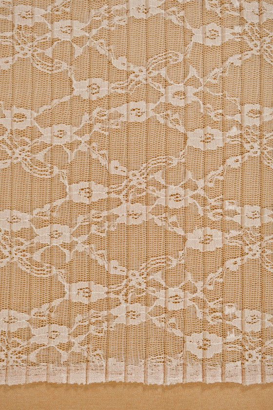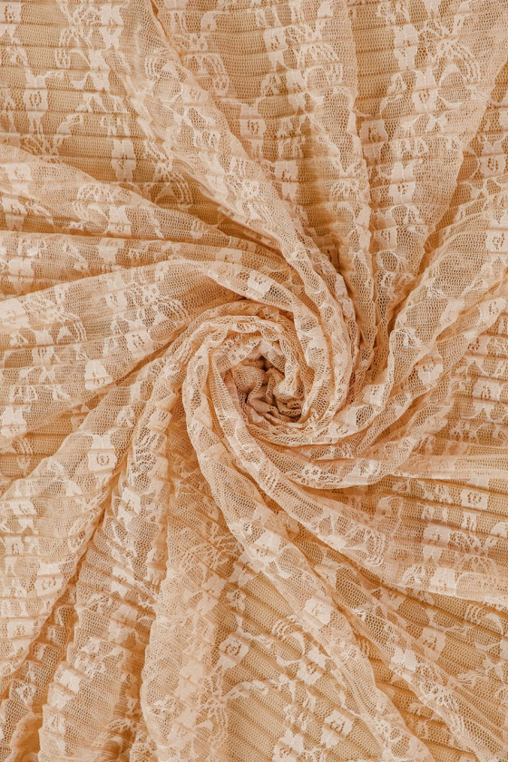 Vacker plisserad spets i beige. Delikat, flexibel. Perfekt för klänningar eller blusar.