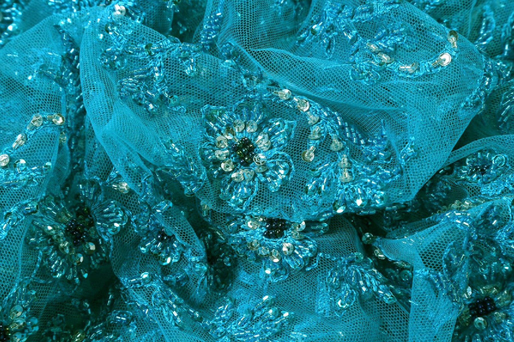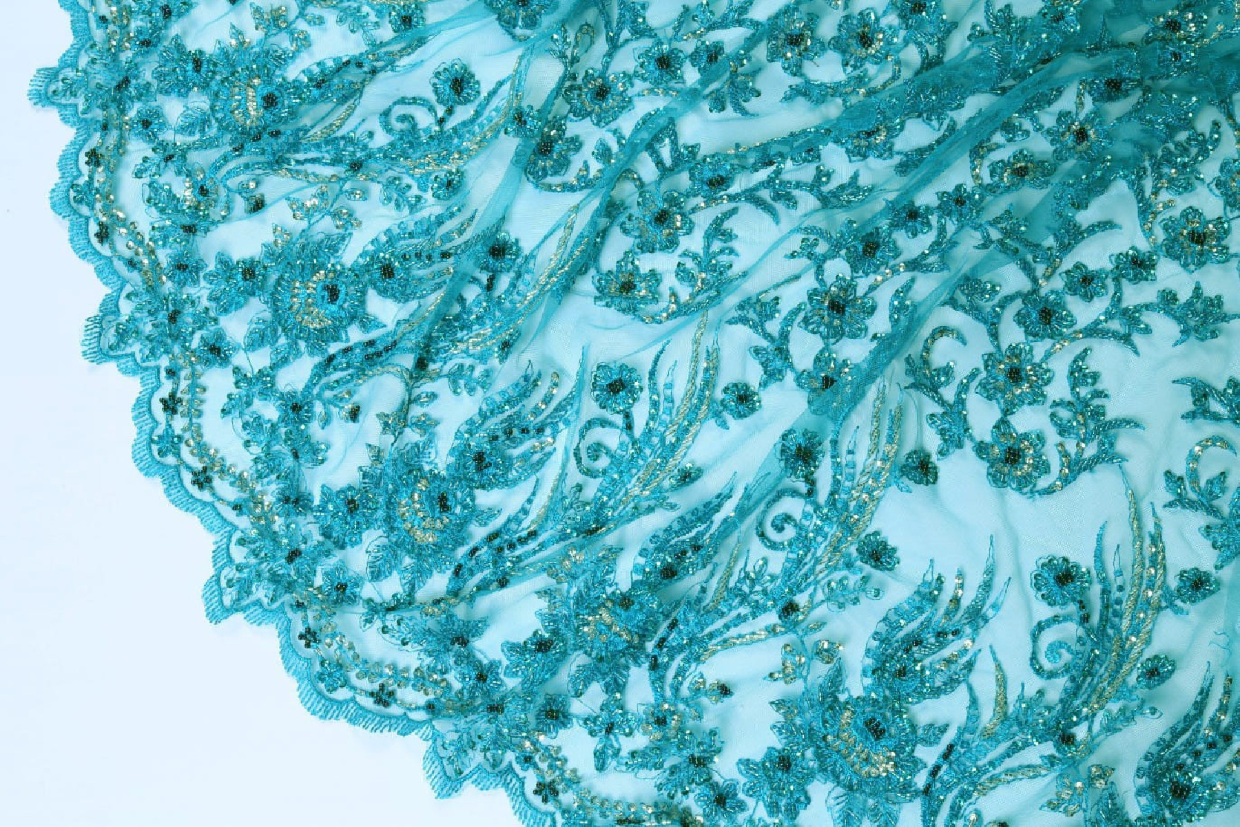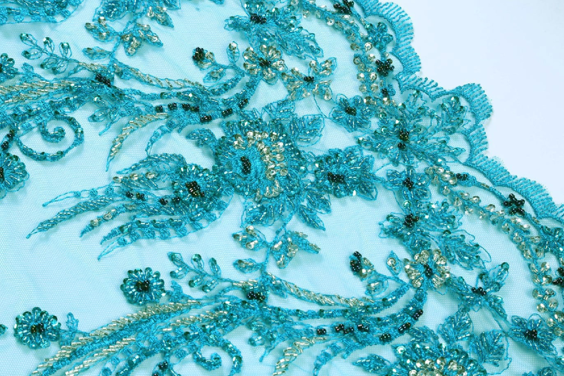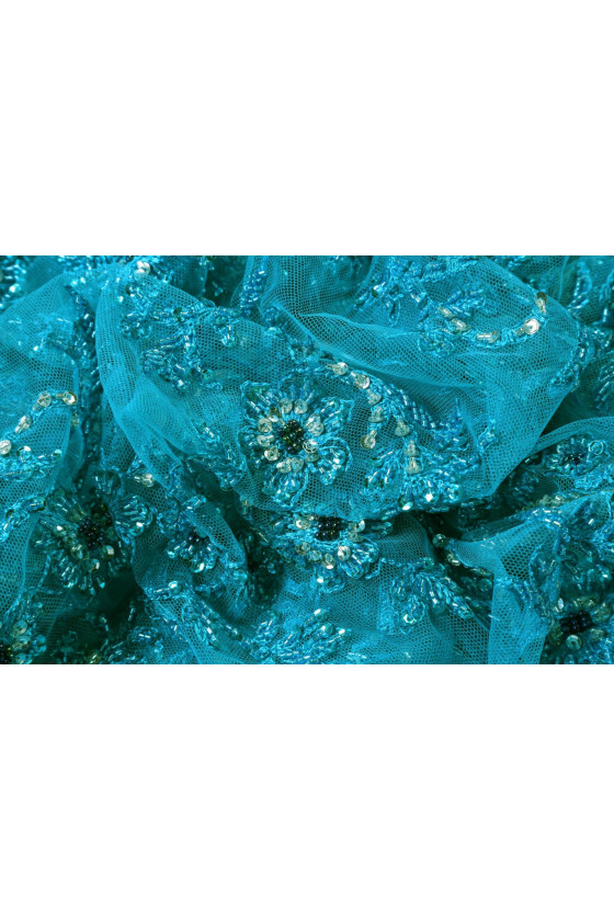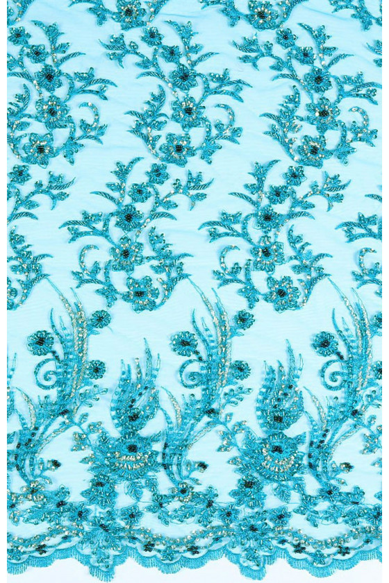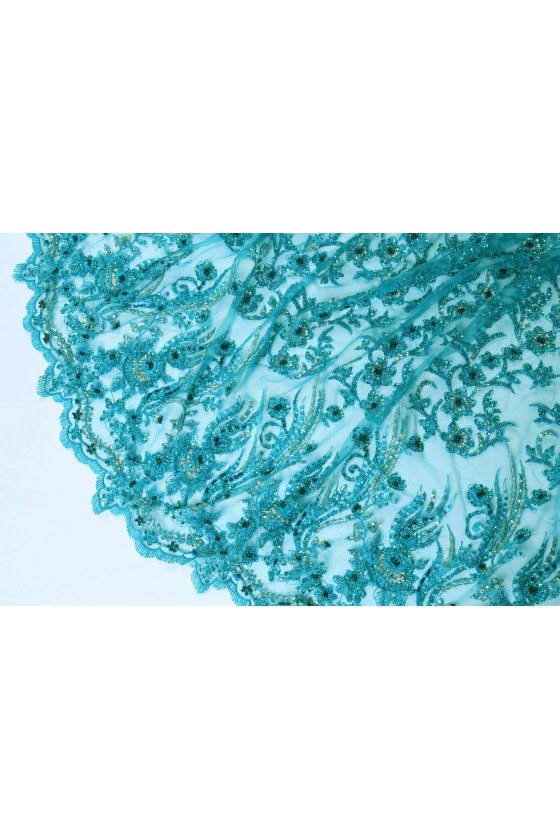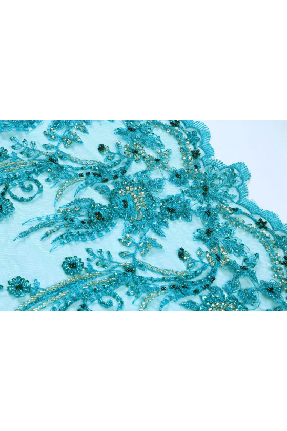 Turkos spets med pärlor