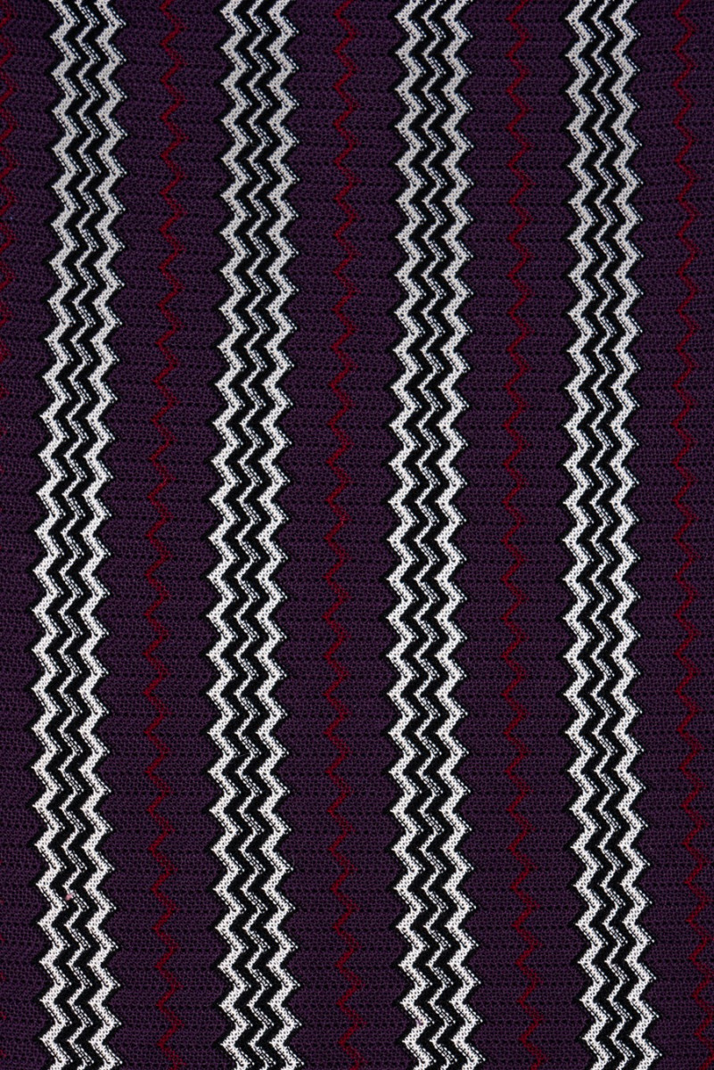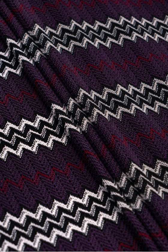 Italiensk tröja stickat tyg med en lös väv, vävd av naturlig ull, polyamid och akryl - ett karakteristiskt motiv av färgglada sicksackmönster från det välkända modehuset. Vi syr den omkrets.