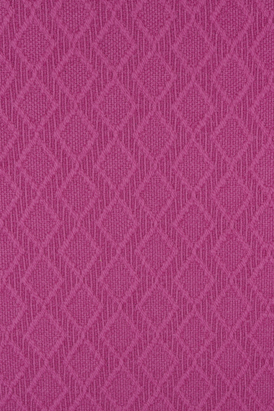 Italienskt tröjtyg i rosa med ett motiv av små diamanter (3 cm), vävt av verginull med en inblandning av polyamid. Tjockare, icke-elastiskt tyg med tät väv.