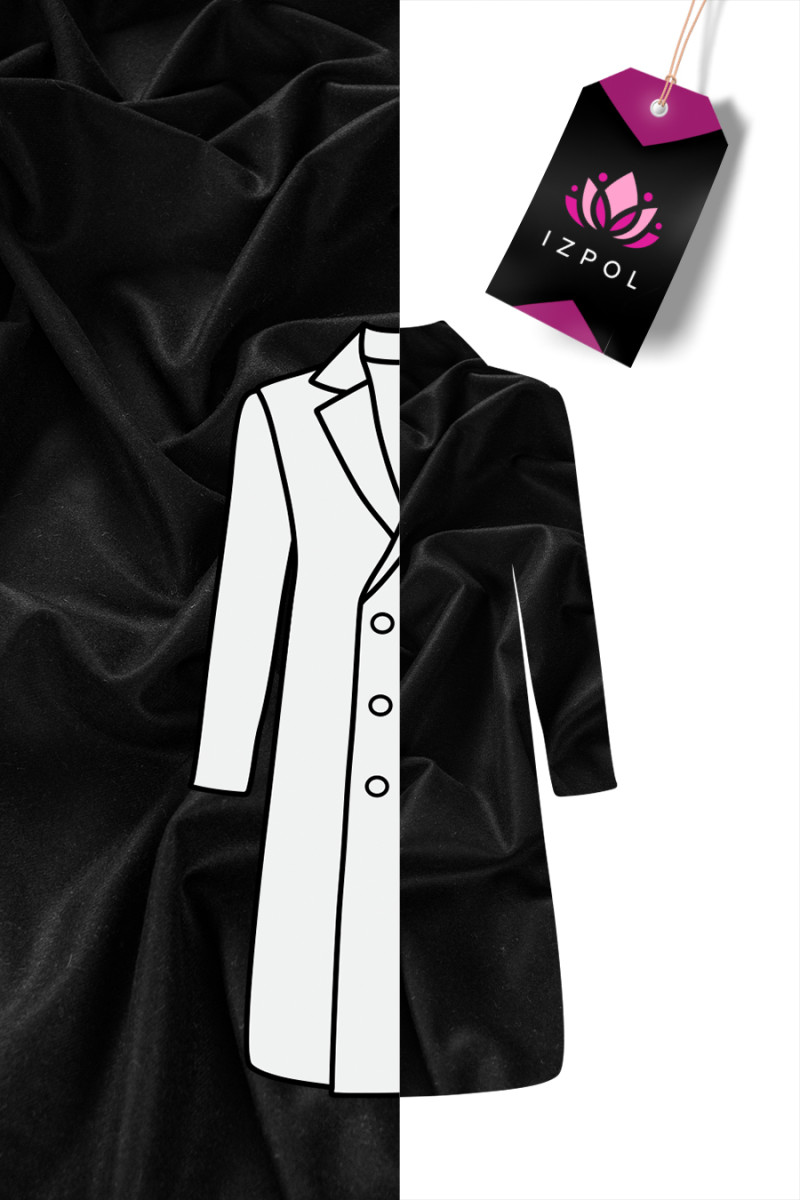 Svart tyg designat för att sy kappor eller jackor. Tyget består av: ull 80% och polyester 20%.