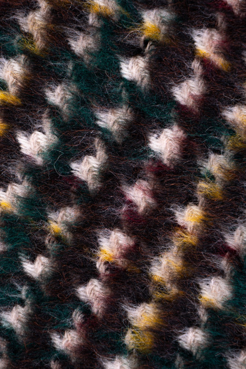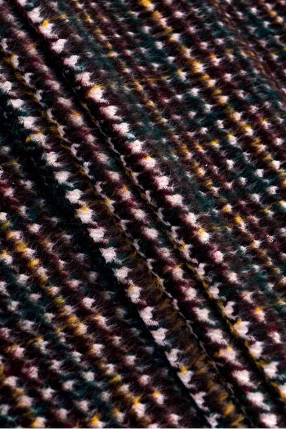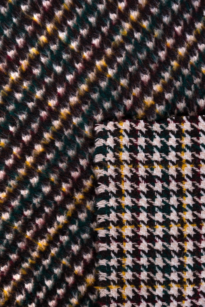 Italienskt kapptyg - dubbelsidigt, med ett färgglatt kycklingfotmotiv. Ena sidan är slät, den andra med längre hår. Tyget är tjockare, mycket behagligt att ta på - perfekt för att sy en kappa, jacka, väst, poncho. Vi rekommenderar kemtvätt