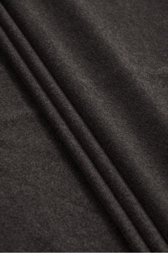 Italienskt kapptyg i grå färg med ett litet, suddigt fiskbensmönster. Vävd av naturlig ull och polyester. Ylletyger är idealiska för ytterkläder (kappa, jacka, väst) eftersom de värmer och samtidigt låter huden andas. Vi rekommenderar kemtvätt.