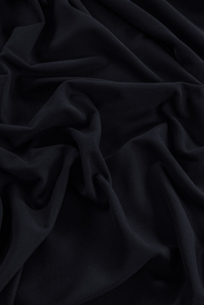 Italiensk verginpäls med en blandning av kashmir och polyamid i mörkt marinblått. Ett mycket mjukt, ädelt tyg med en delikat glans är perfekt för att sy en höst- och vinterkappa, jacka eller varm väst. Den bästa kvalitetskompositionen gör att tyget inte bara ser vackert ut utan också är väldigt varmt. Tyget är perfekt för dig som gillar klassiker i högsta upplaga.