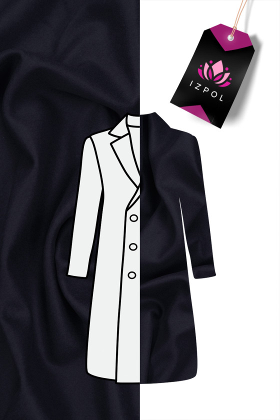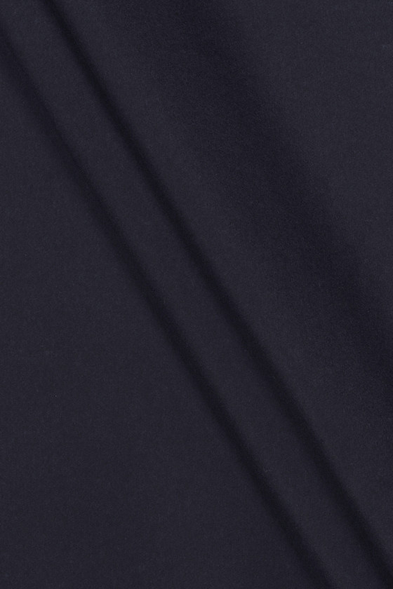 Italiensk pälsull med inblandning av polyamid i mörkt marinblått. Ett mycket köttigt, ädelt tyg med en delikat twillväv och slät struktur, perfekt för att sy en höst-vinterkappa, jacka eller varm väst. Kombinationen av naturfibrer med syntetiska fibrer resulterar i att tyget är varmt, men samtidigt starkt och hållbart. Den vackra, klassiska färgen gör materialet tidlöst och alltid moderiktigt.