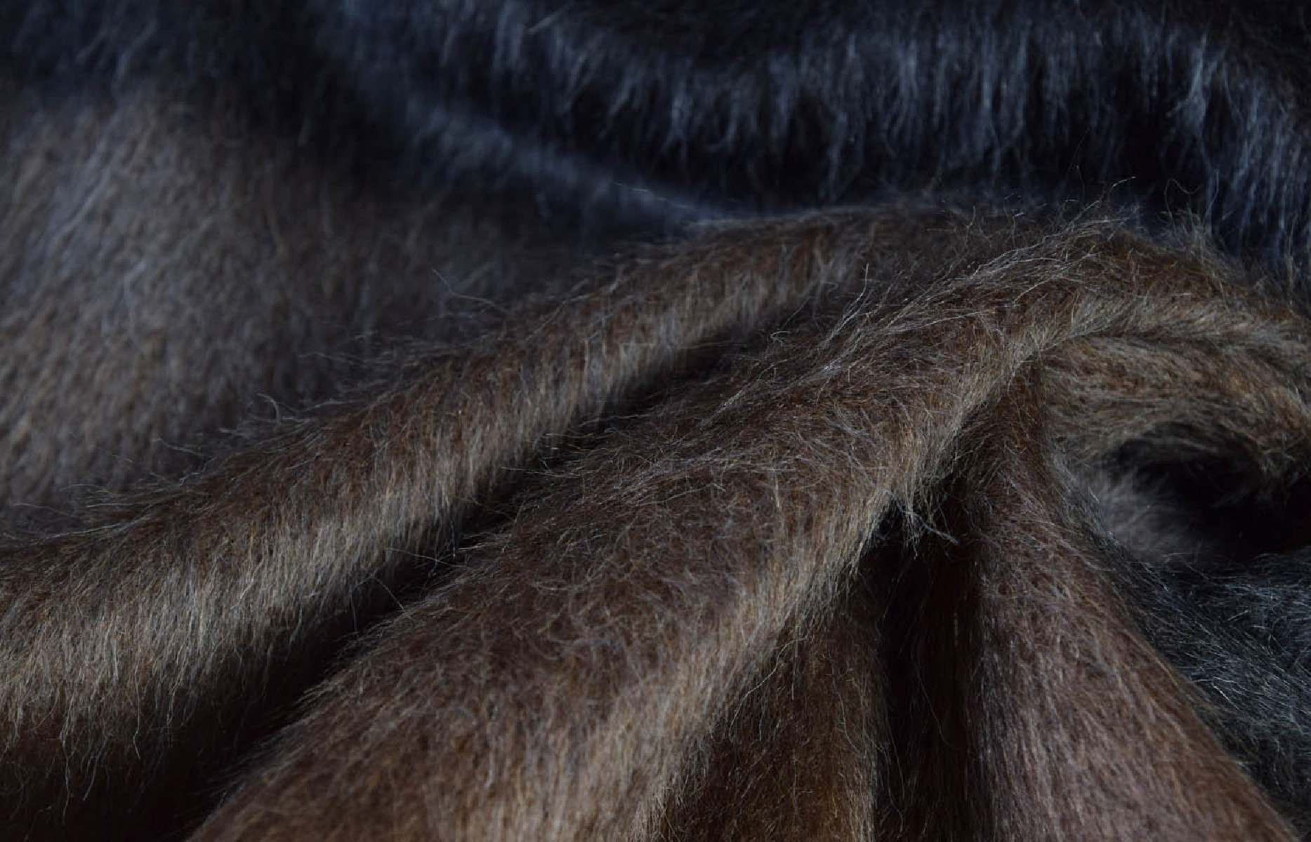 Pälstyg vävt av en blandning av naturlig ull - alpacka och fårull från första klippningen. Mjuk vid beröring, icke-elastisk. Håret är ca 2-3 cm långt. Den kommer i skuggade kuponger med måtten 55cm * 150cm.
