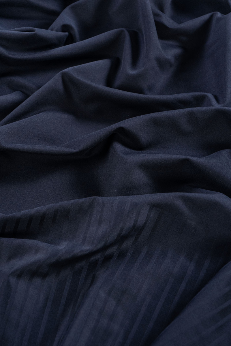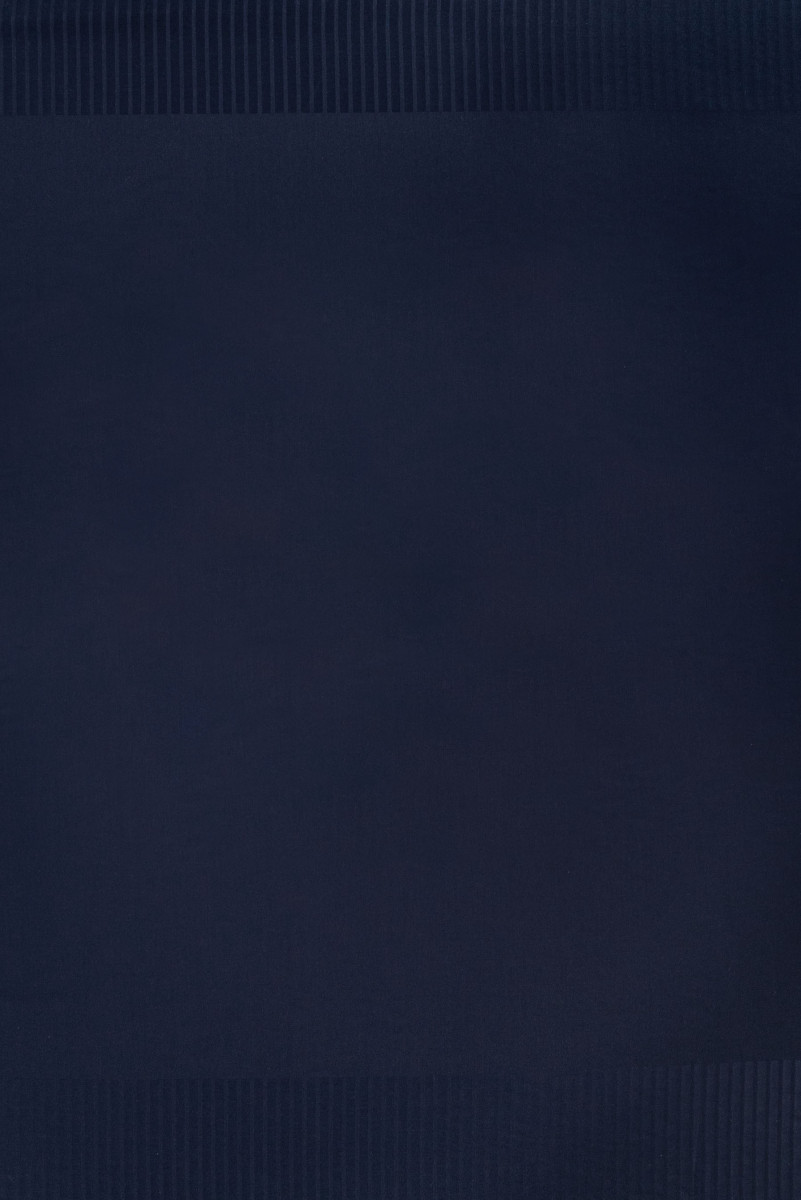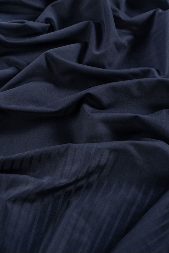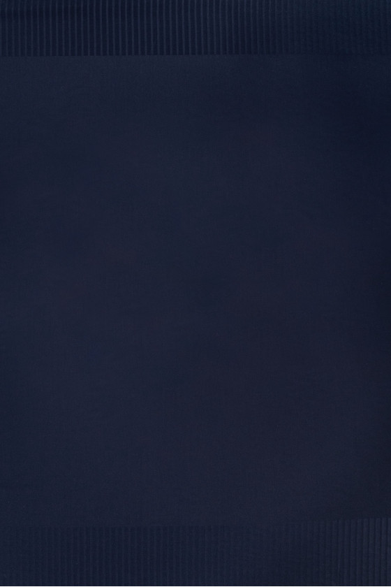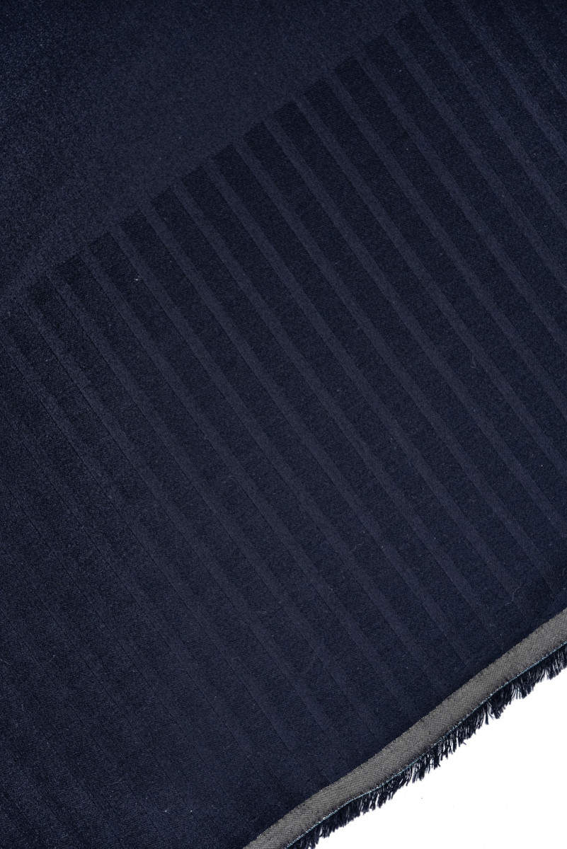 Italienskt kostymtyg i marinblått med dekorativa bårder längs tygets kanter, 23 cm brett. Det matta tyget liknar ull i sin väv - perfekt för att sy en kostym, klänning, kjol eller jacka.