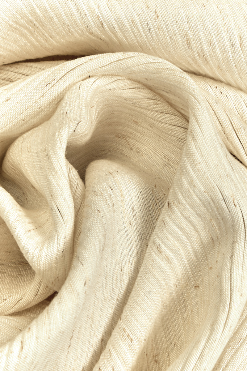 Original viskostyg med tillsats av linne och polyamid i melerad ecru och beige färg. Tyg med korrugerad struktur (oregelbundet, tunt veck).